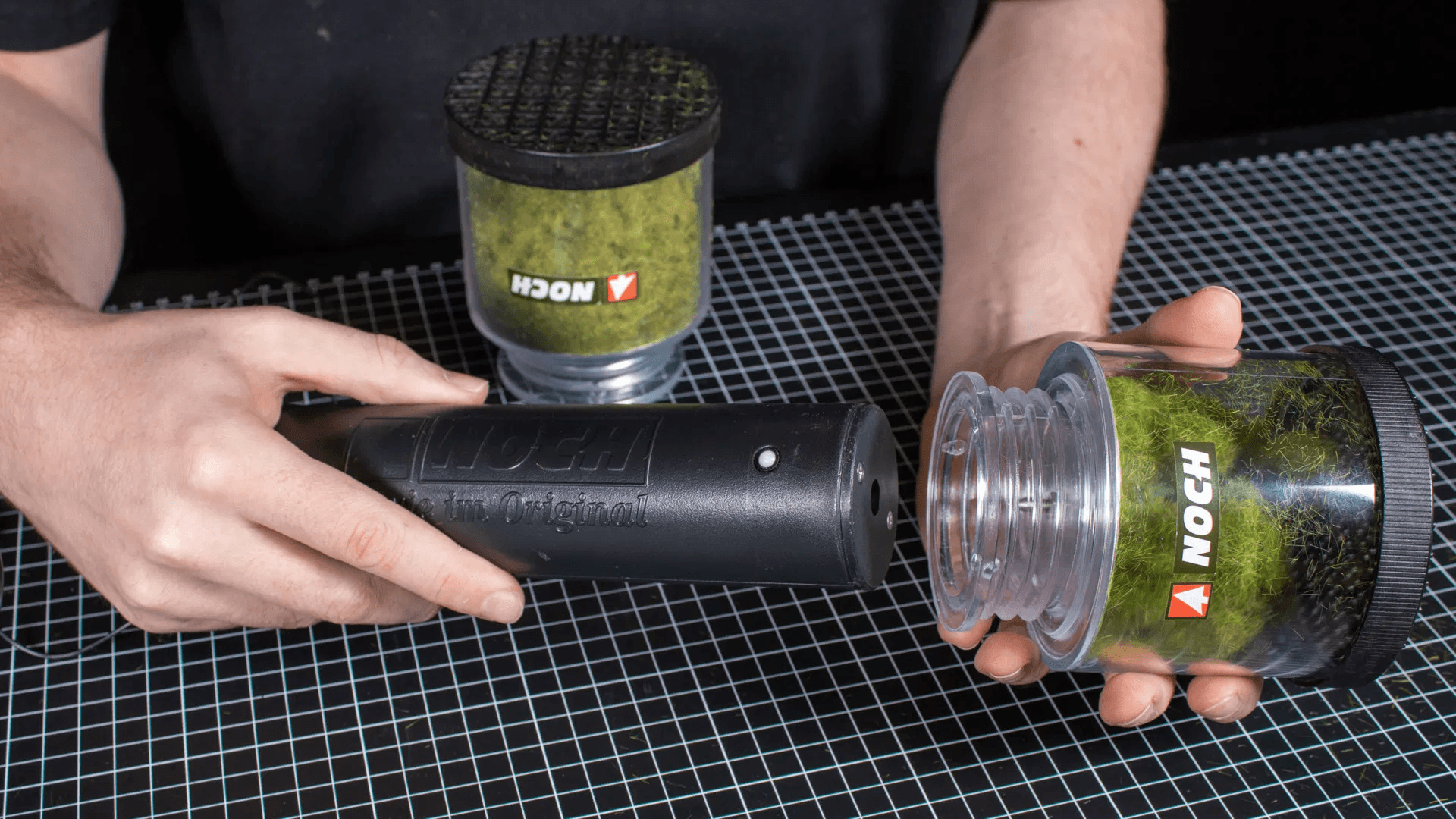 Das innovative Flock-Wechselbehälter-System mit Bajonettverschluss ermöglicht den schnellen Wechsel zwischen verschiedenen Grasfasern, bevor der Kleber trocknet. Im Set enthalten sind Standard- und XL-Flock-Wechselbehälter, ein Detail-Beflocker sowie passende Siebe (grob, mittel, fein) für jede Anwendung.
