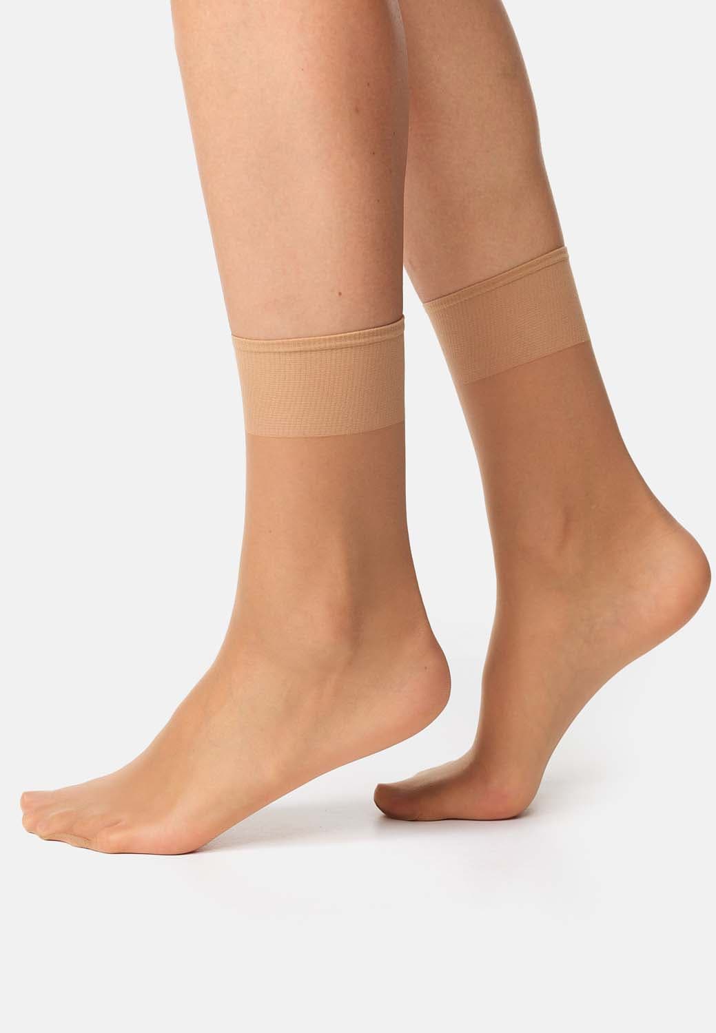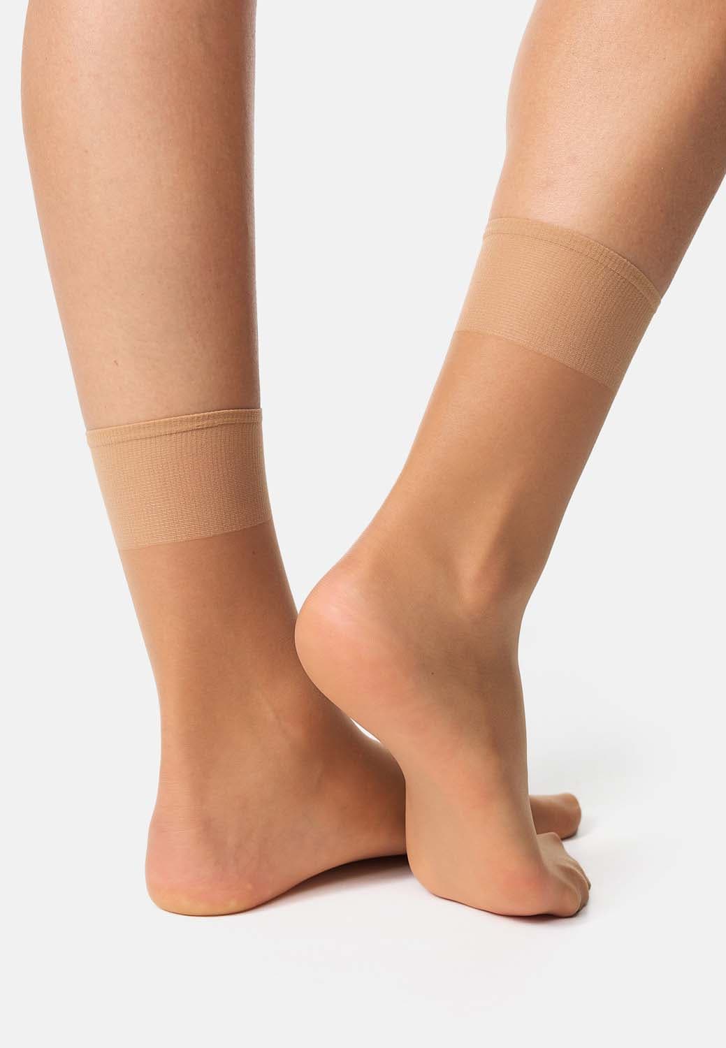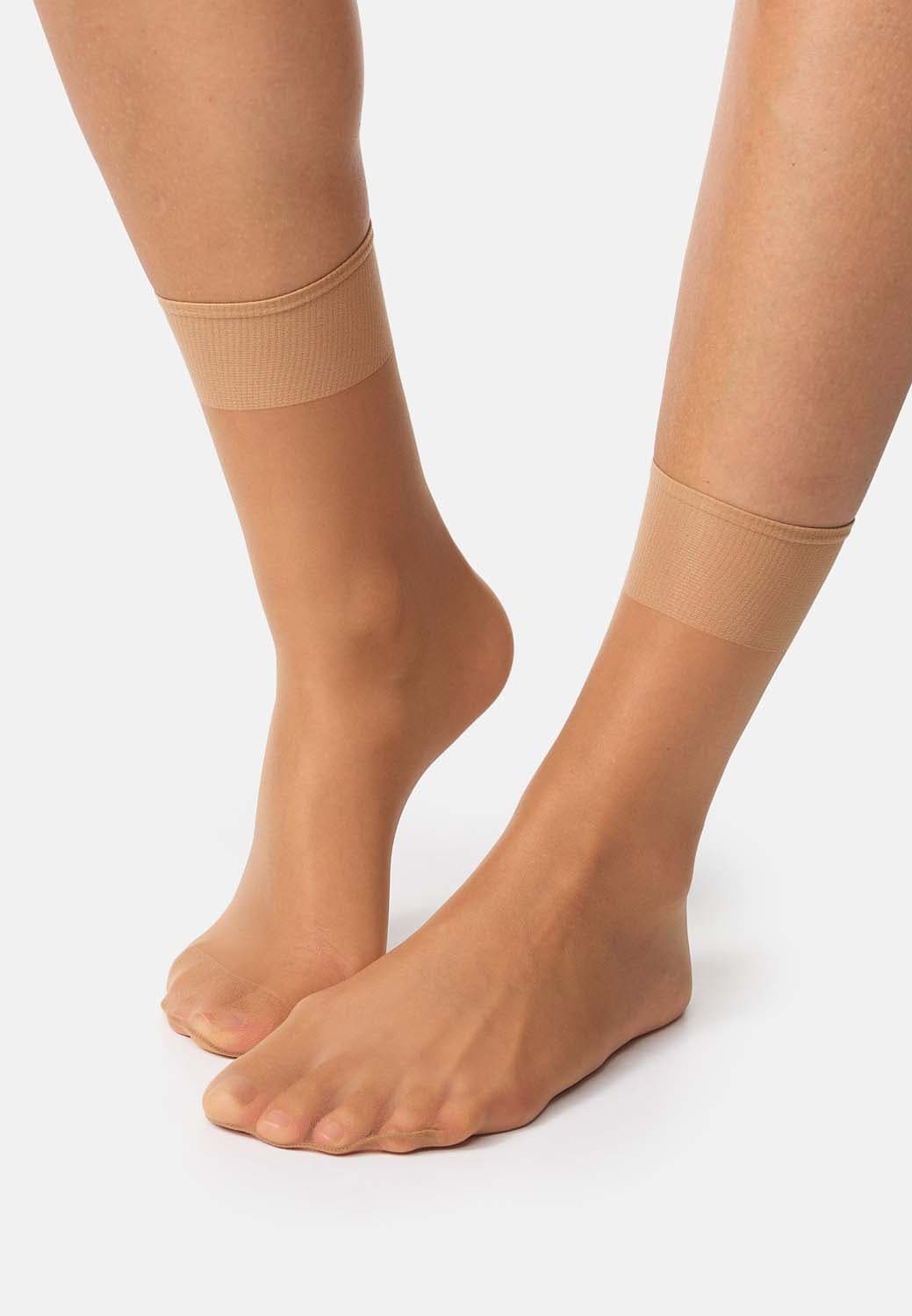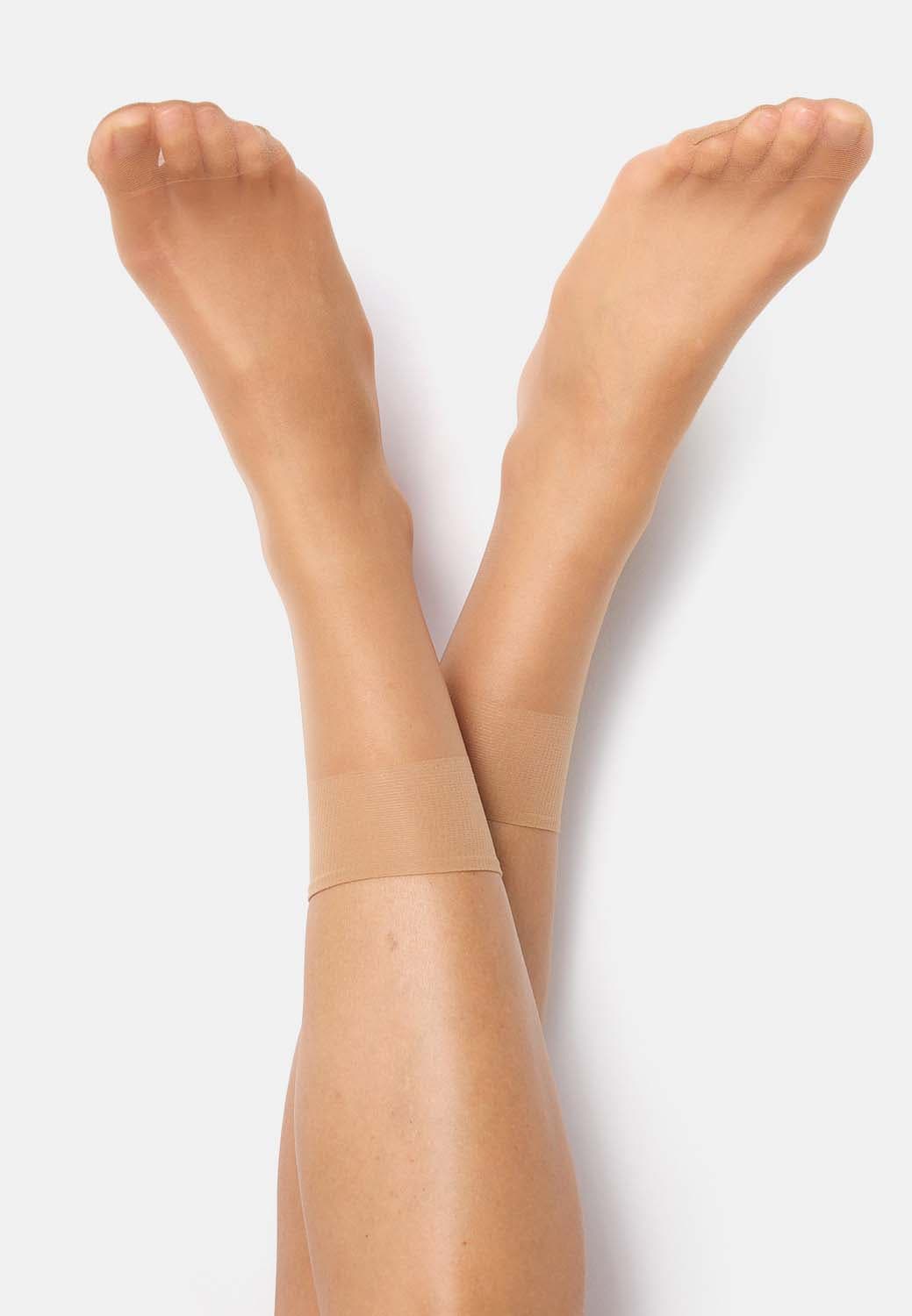 Transparente, seidig glänzende Feinsöckchen mit extra langem Schaft. Angenehm breiter Komfortbund. Sitzen perfekt durch die Verarbeitung der Faser LYCRA®. Leicht verstärkte Fußspitze. 15 den / 17 dtex. Für alle Größen geeignet.