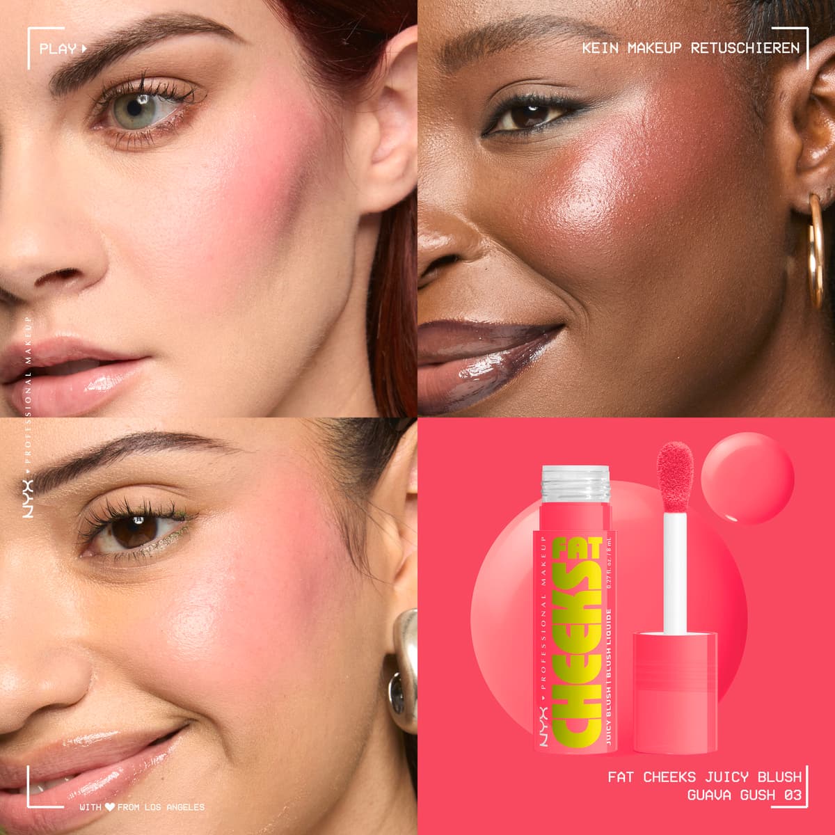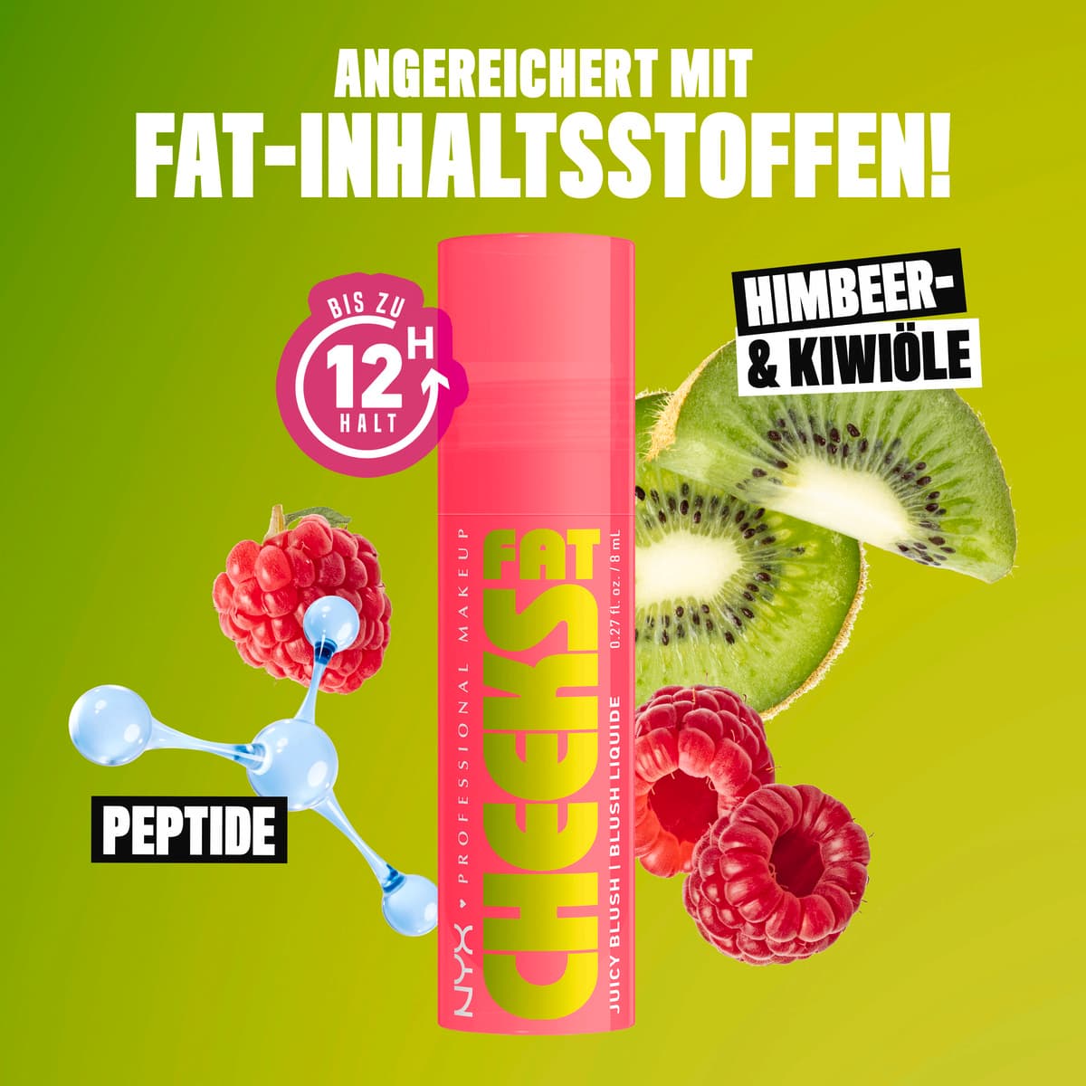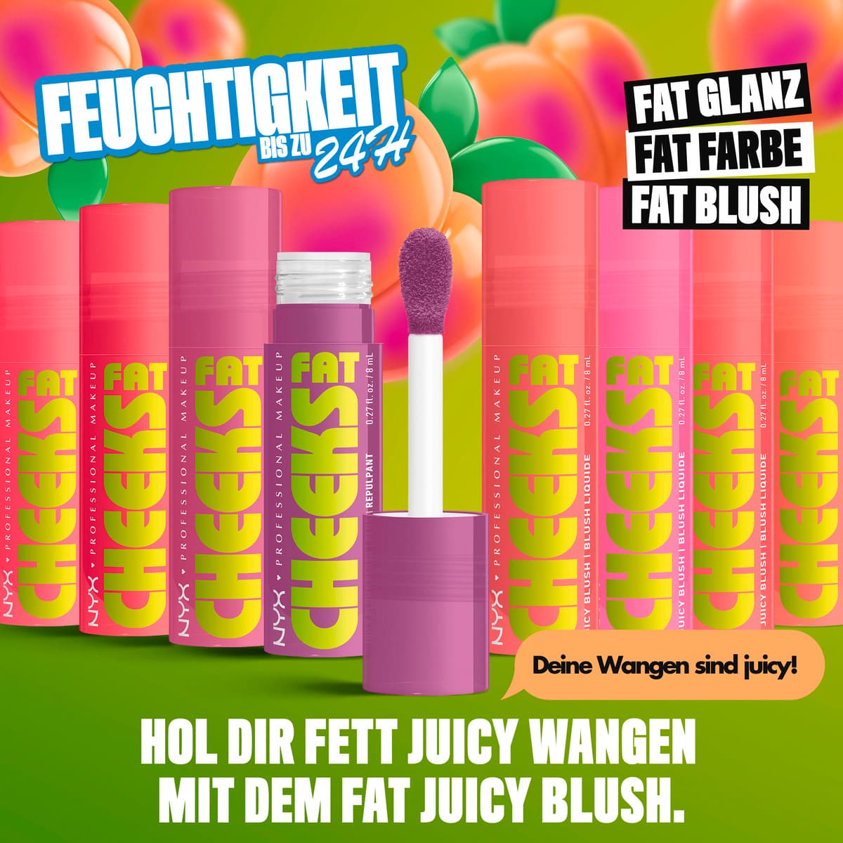Der FAT CHEEKS Blush von NYX Professional Makeup verleiht den Wangen eine strahlende und intensive Farbe, die an saftige Früchte erinnert. Dafür kommt das Blush in acht individuell aufbaubaren Juicy Shades daher, die jedem Hautton einen aufregenden Juicy Cheek-Look verleihen. Um die Wangen gleichzeitig zu pflegen und den Halt des Blushes zu verlängern, enthält die cremige Formel Inhaltsstoffe wie Kiwi- und Himbeeröle sowie aufpolsternde Peptide, welche bis zu 24 Stunden Feuchtigkeit spenden. Für ein farblich perfekt aufeinander abgestimmtes Make-up, kann der Fat Cheeks Blush nicht nur auf den Wangen, sondern auch auf den Lippen sowie auf den Augenlidern verwendet werden.