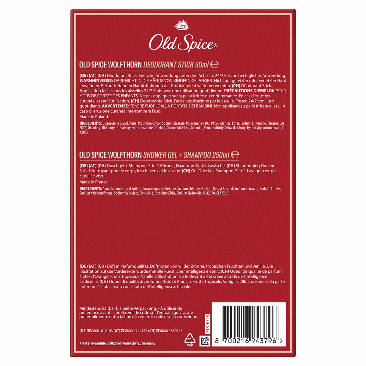 Erlebe unglaubliche Frische 24/7* mit den Old Spice Geschenksets! Auf der Suche nach dem perfekten Geschenk für den Gaming-Liebhaber, der sein Leben mit Stil und einem unverkennbaren Duft auf das nächste Level hebt? Hier wirst du fündig! Das Geschenkset enthält den Wolfthorn Deostick und das passende Duschgel für Männer – stilvoll verpackt in einer Kartonschachtel im Gamer-Design. Der hochwertige Duft von Old Spice Wolfthorn ist immer eine gute Wahl: Das frische Aroma aus wilden Zitrusfrüchten, tropischen Früchten, saftiger Mandarine und einem Hauch Vanille verstärkt die ungezähmte Essenz. Warum ist dieses Old Spice Geschenkset noch nicht in deinem Warenkorb? (*bei Verwendung von Duschgel und Deostick)