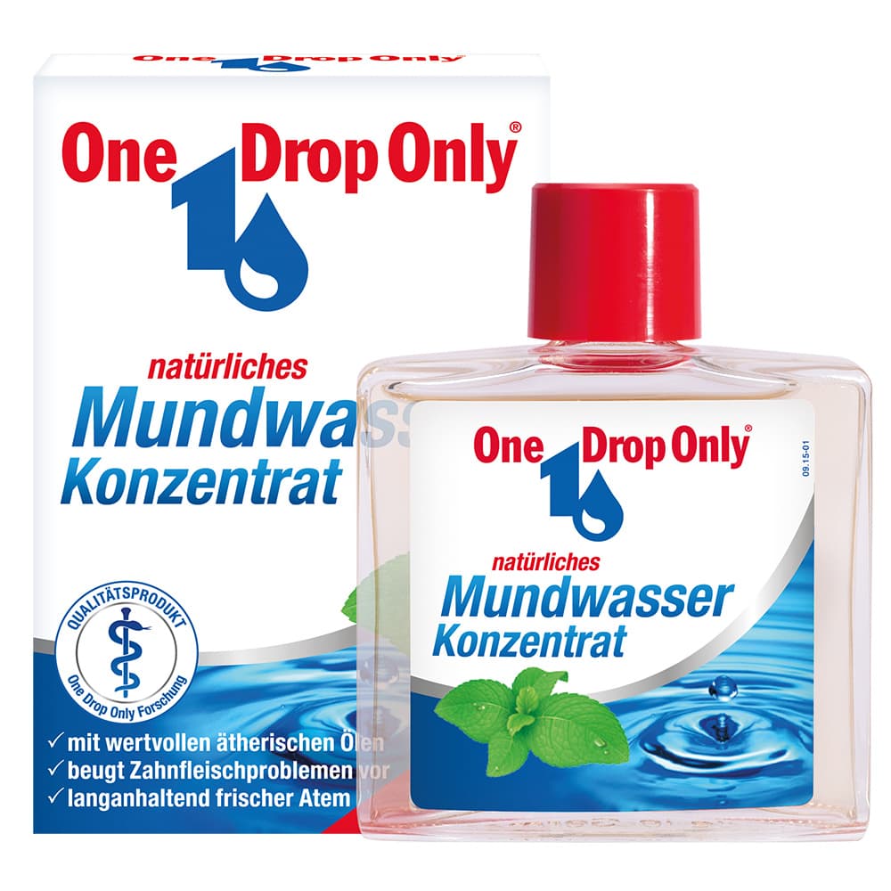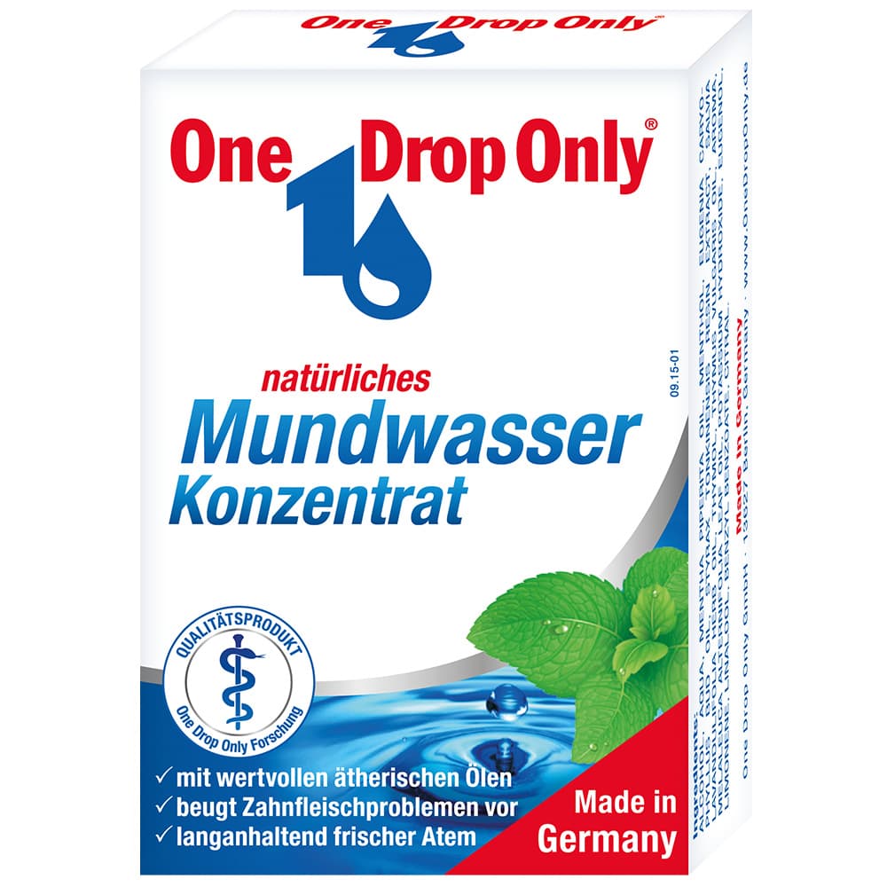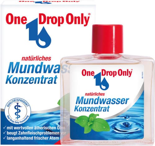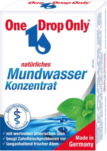 BEWÄHRTE QUALITÄT - Seitüber 70 Jahren sorgt das One Drop Only Mundwasser Konzentrat für frischen Atem, saubere Zähne& gepflegtes Zahnfleisch. Egal, ob morgens, abends oder als schneller Frischekick für Zwischendurch. RUNDUM GESCHÜTZT - Das Mint Mundwasser sorgt für langanhaltend frischen Atem, schützt vor blutendem Zahnfleisch& schmerzhaften Zahnfleischentzündungen und trägt gleichzeitig zur Stärkung& Straffung des Zahnfleisches bei. SPARSAM& NACHHALTIG - Nur ein Tropfen Mundwasser wird mit 15ml Wasser verdünnt, so dass 50ml Konzentrat für bis zu 1.000 Anwendungen reichen. Einsparpotenzial: Knapp 30 Flaschen fertige Mundspülung, d.h.über 500g Plastik. NATÜRLICHE FRISCHE - Das Mundwasser mitätherischenÖlen bestehtüberwiegend aus pflanzlichen& höher konzentrierten Inhaltsstoffen, wie Pfefferminz-, Nelken-, Salbei-, Thymian-& Teebaumöl, sowie Benzoetinktur. WISSENSCHAFTLICH GETESTET - Das One Drop Only Mundwasser gegen Mundgeruch wird in Deutschland hergestellt, entspricht höchsten Qualitätskriterien& bietet so die ideale Grundlage für eine einwandfreie Mundpflege.