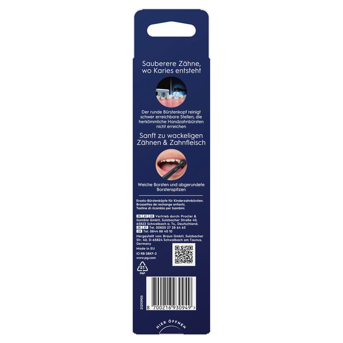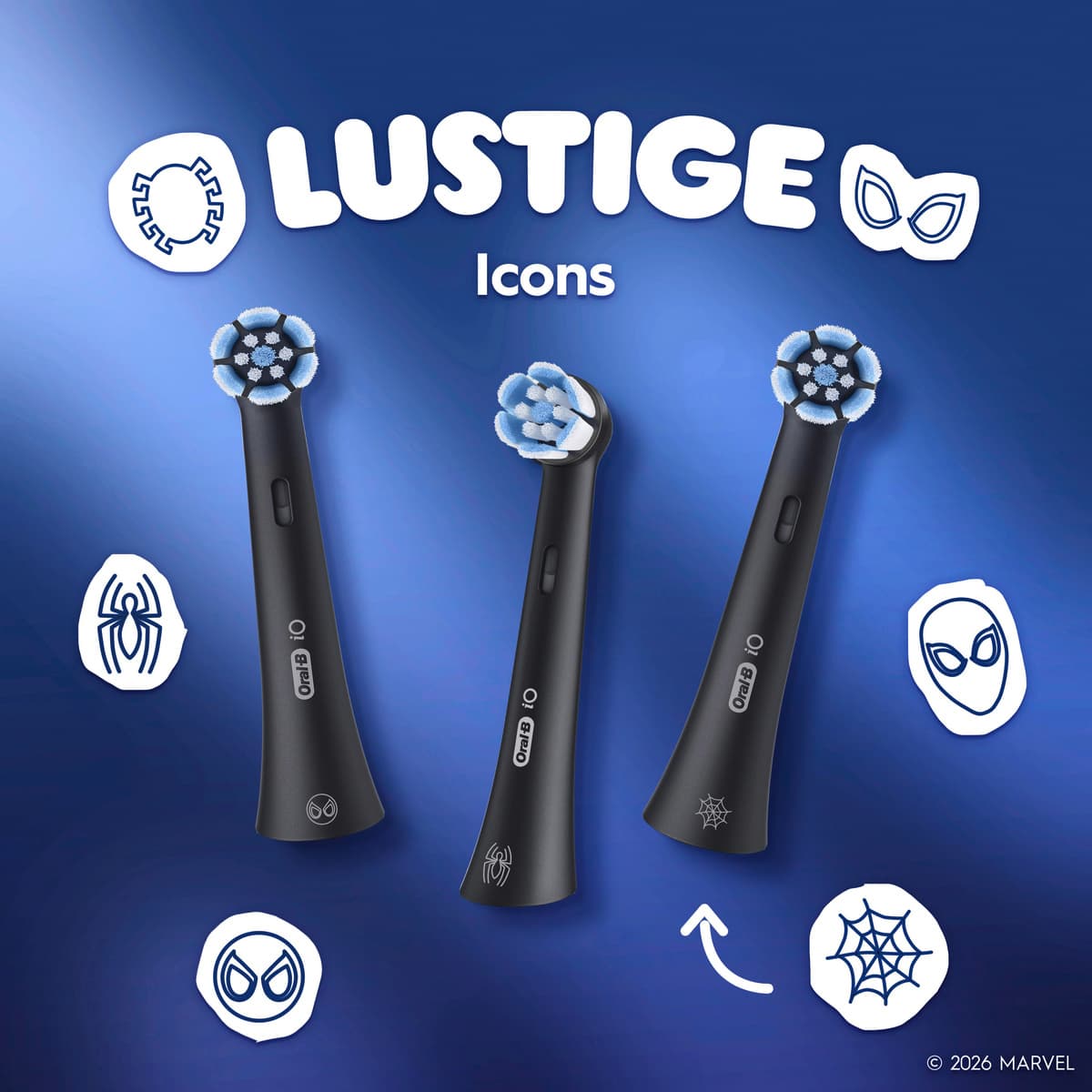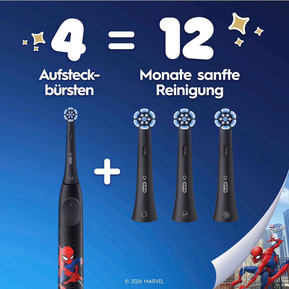 Die Oral-B iO Kids 6+ Aufsteckbürste bietet Kindern den Spaß mit Spiderman und die sanfte, effektive Reinigung einer von ZahnärztInnen empfohlenen Oral-B Zahnbürste. Die extra weichen Borsten und der kleine, runde Bürstenkopf sind speziell für Kinder entwickelt, um stark gegen Karies, aber sanft zu Zahnfleisch und wackeligen Zähnen zu sein.