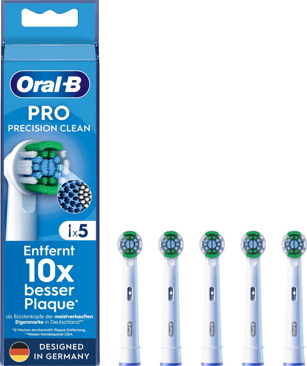 • Klinisch bestätigt: ENTFERNT 10X BESSER PLAQUE* als Bürstenköpfe der MEISTVERKAUFTEN EIGENMARKE in Deutschland** (*12 Wochen durchschnittl. Plaqueentfernung, **Nielsen Handelspanel L12M)