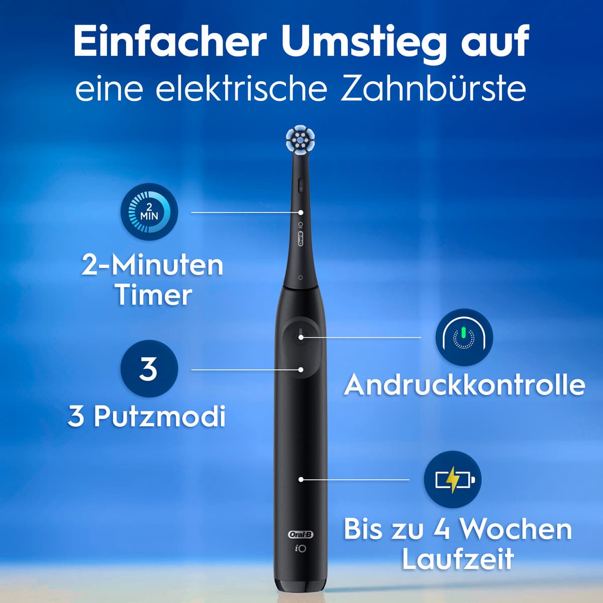 Die Oral-B iO Series 2 ist eine einfach zu bedienende elektrische Zahnbürste, die sanfte Mikrovibrationen mit einem einzigartigen, von ZahnärztInnen inspirierten, runden Bürstenkopf kombiniert - für ein professionell Reinigungsgefühl jeden Tag. Sie wurde speziell für Handzahnbürsten-Nutzer entwickelt, die einen einfachen Wechsel zu einer elektrischen Zahnbürste wünschen - mit schlankem Design, einfacher Ein-Knopf-Bedienung, leisem Betrieb und langanhaltendem Akku, der mit einer Aufladung bis zu 4 Wochen hält. Für beste Reinigungsergebnisse sollte die Aufsteckbürste alle 3 Monate ausgetauscht werden.