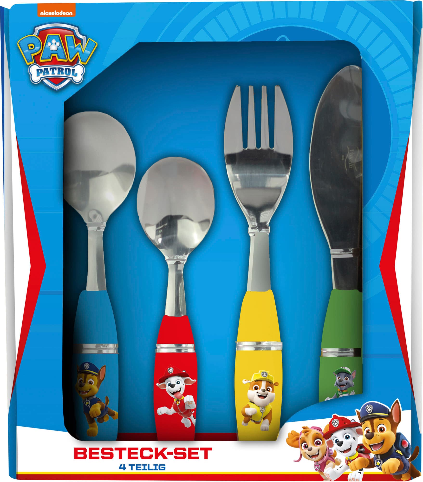 4-teiliges Besteckset für Jungs ab 3 Jahren. Griffe in 4 verschiedenen Farben. Fördert Kleinkinder beim Erlernen des Umgangs mit Besteck, motiviert zum eigenständigen Essen Inhalt: Gabel, Messer, großer Löffel und Tee-Löffel