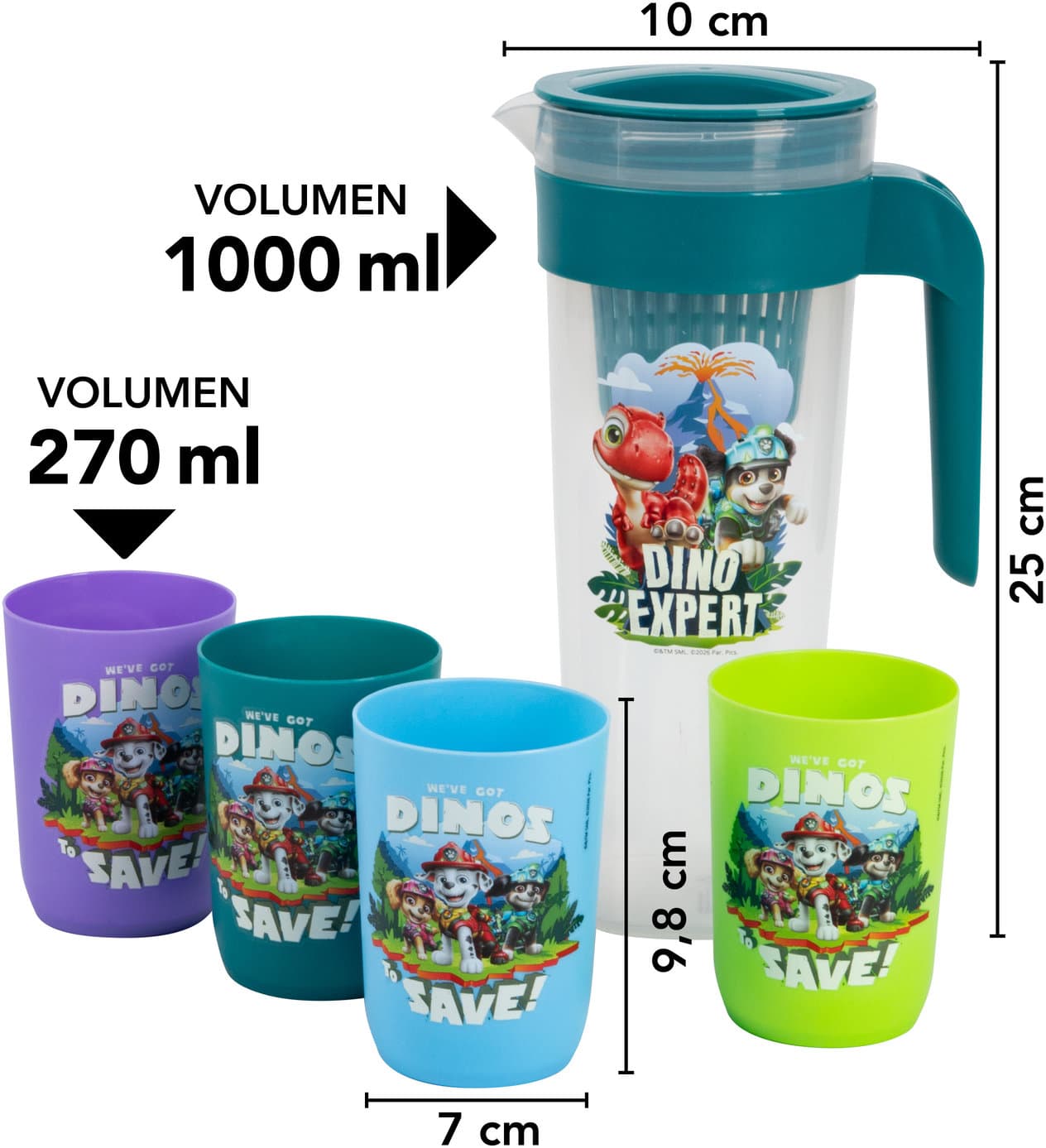 p os Paw Patrol Karaffe mit Sieb und Bechern 1l