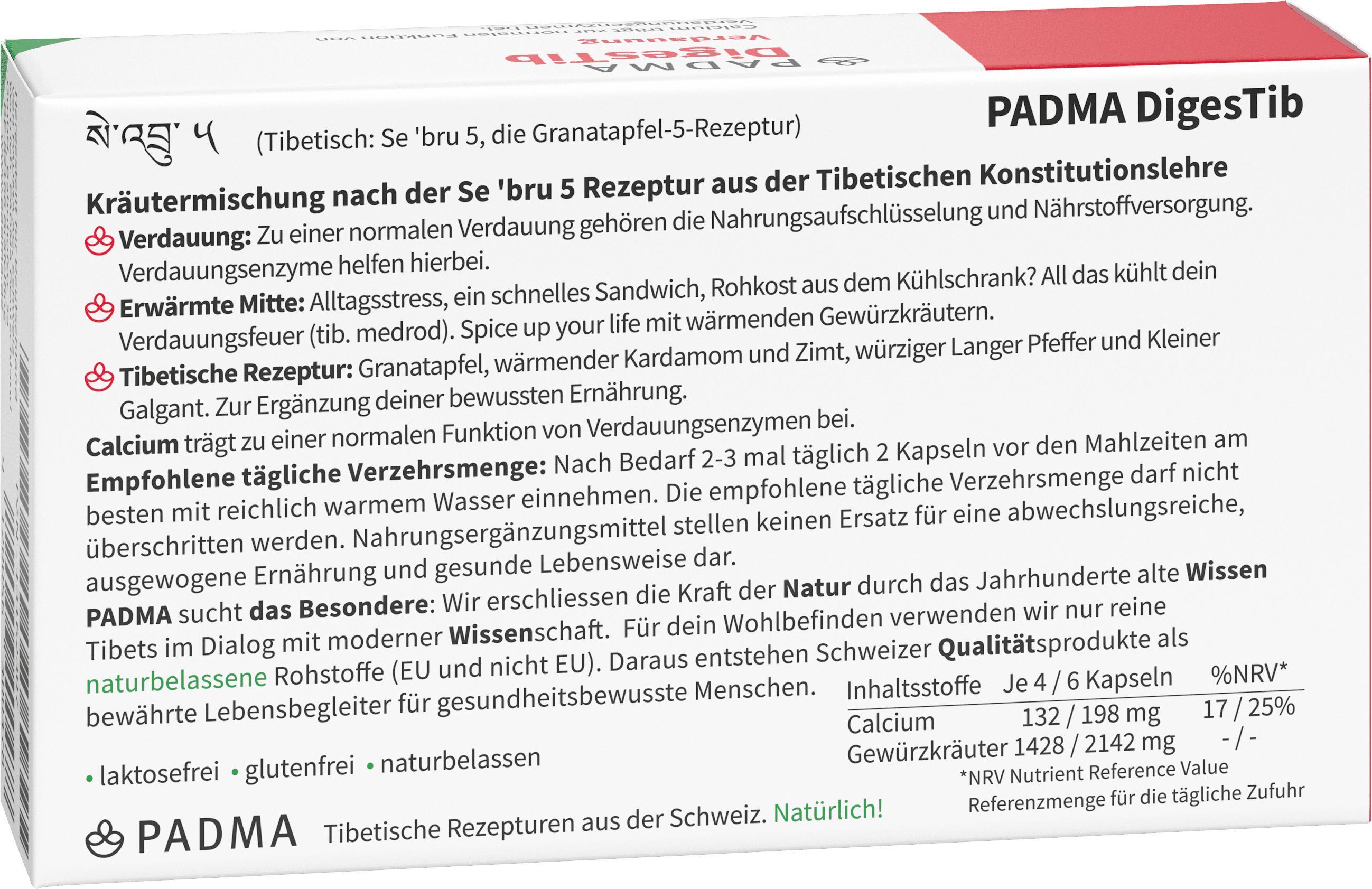 Nahrungsergänzungsmittel: Die erlesene Tibetische Granatapfel- und Gewürzkomposition mit Calcium, welches deine Verdauung unterstützt. Exakt aufeinander abgestimmte, naturbelassene Kräuter und Gewürze mit dem sauerscharfen und würzig warmen Geschmacksprofil von Granatapfel, kleinem Galgant, langem Pfeffer u.a. Der Geschmack ist die Strategie der Natur, mit dem Menschen in Kontakt zu treten.