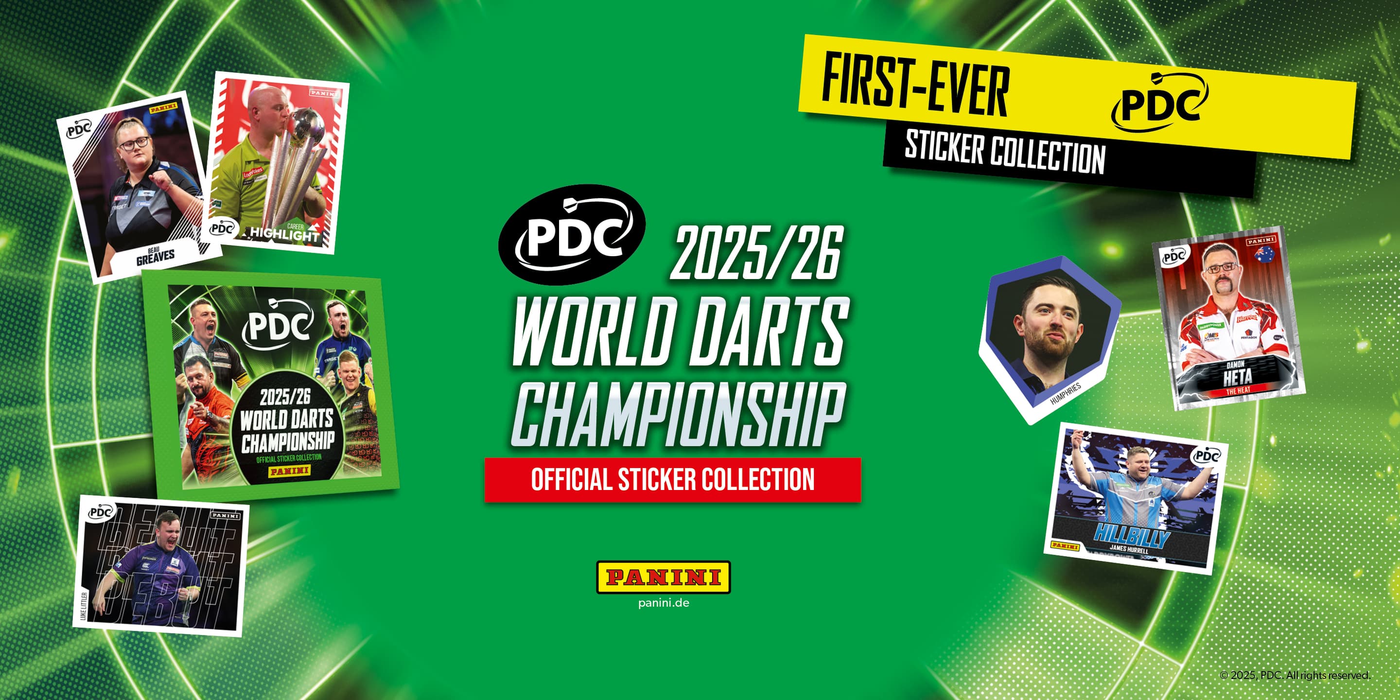 Nach dem großen Erfolg der PDC World Darts Championship 2025 Trading Cards folgt in diesem Jahr die erste Stickerkollektion zum PDC World Darts Championship jemals.
