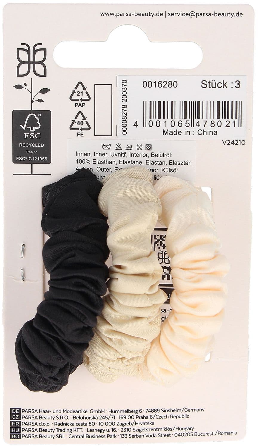 Vielseitig und komfortabel im Alltag Ob für einen hohen Pferdeschwanz, einen lockeren Dutt oder als modisches Accessoire am Handgelenk – diese Scrunchies sind echte Allrounder. Die elastische Verarbeitung sorgt dafür, dass Ihre Frisur den ganzen Tag über zuverlässig hält, ohne das Haar zu schädigen oder unangenehmen Druck auszuüben. Durch die weiche Stoffoberfläche gleiten die Gummis sanft über das Haar, was Haarbruch effektiv vorbeugt.