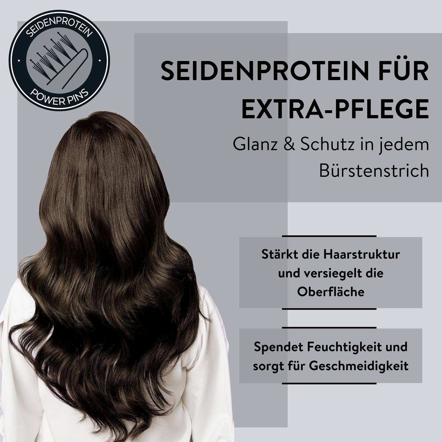 - 🌟 ✨ DIE REVOLUTION DER HAARPFLEGE – MAGIC GLOW NATURBORSTEN MIT SEIDENPROTEIN: Die innovative Bürstentechnologie kombiniert hochwertige Naturborsten, angereichert mit Seidenprotein, mit abgerundeten Nylon-Pins. Diese einzigartige Mischung sorgt für ein müheloses Entwirren, reduziert Frizz und bringt dein Haar zum strahlen wie nie zuvor.