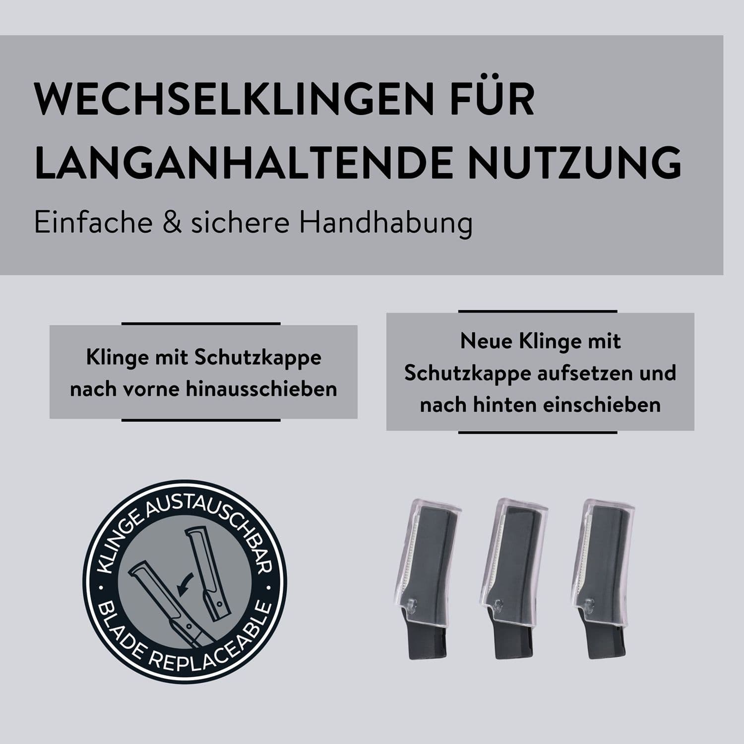 - Einfacher und sicherer Austausch der Klingenköpfe