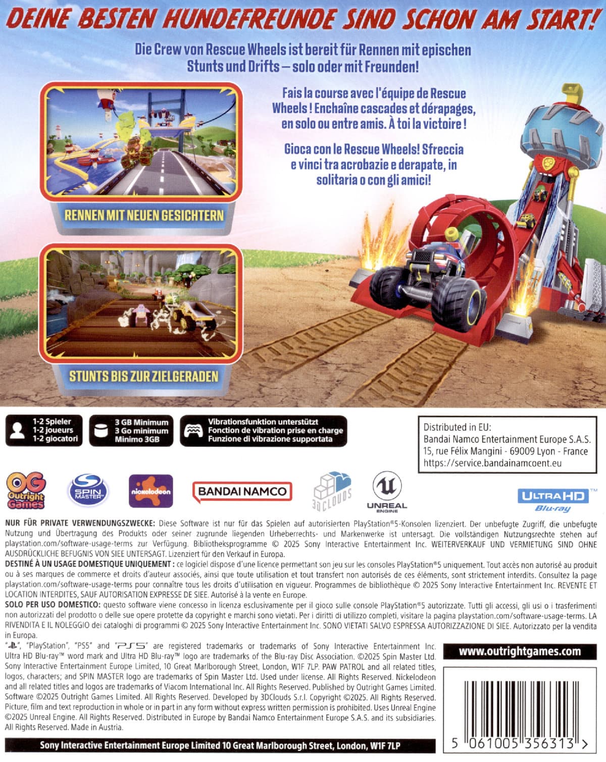Die Welpen-Rennfahrer verfügen über einzigartige Fähigkeiten - also Vorsicht, wenn Tennisbälle durch die Luft fliegen und Gegner ins Schleudern geraten. Auf den Schotterpisten warten jede Menge Drifts, Turboboosts und epische Stunts. In diesem Spiel kann jeder zum Monster-Truck-Champion werden, ob solo oder zusammen mit Freunden!