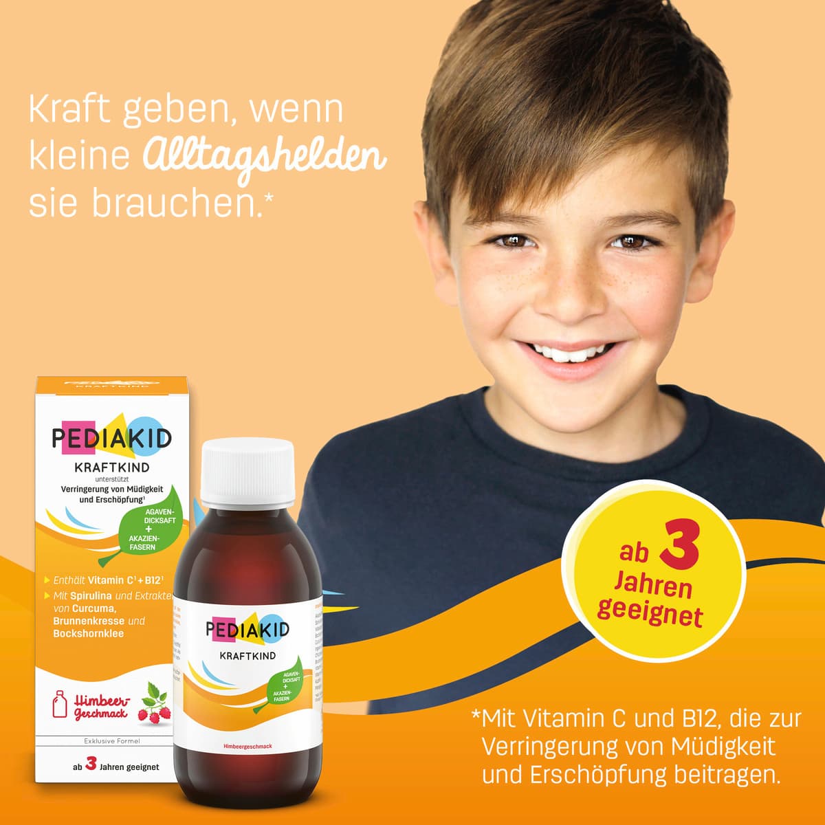 Nach Krankheiten, in der kalten und nassen Jahreszeit oder anderen Belastungssituationen, wird das Immunsystem von Kindern besonders gefordert. In diesen Zeiten ist es wichtig, das Kind ausreichend mit Vitaminen und Spurenelementen zu versorgen. Mit Kraftkind wird auf leckere Art und Weise gewährleistet, dass das Kind zu jeder Zeit gut versorgt ist. Neben Vitaminen und Spurenelementen, enthält das Produkt auch zahlreiche hochwertige Inhaltsstoffe wie Spirulina Pulver und Extrakte aus Bockshornklee, Curcuma, Ingwer oder Chicorée.