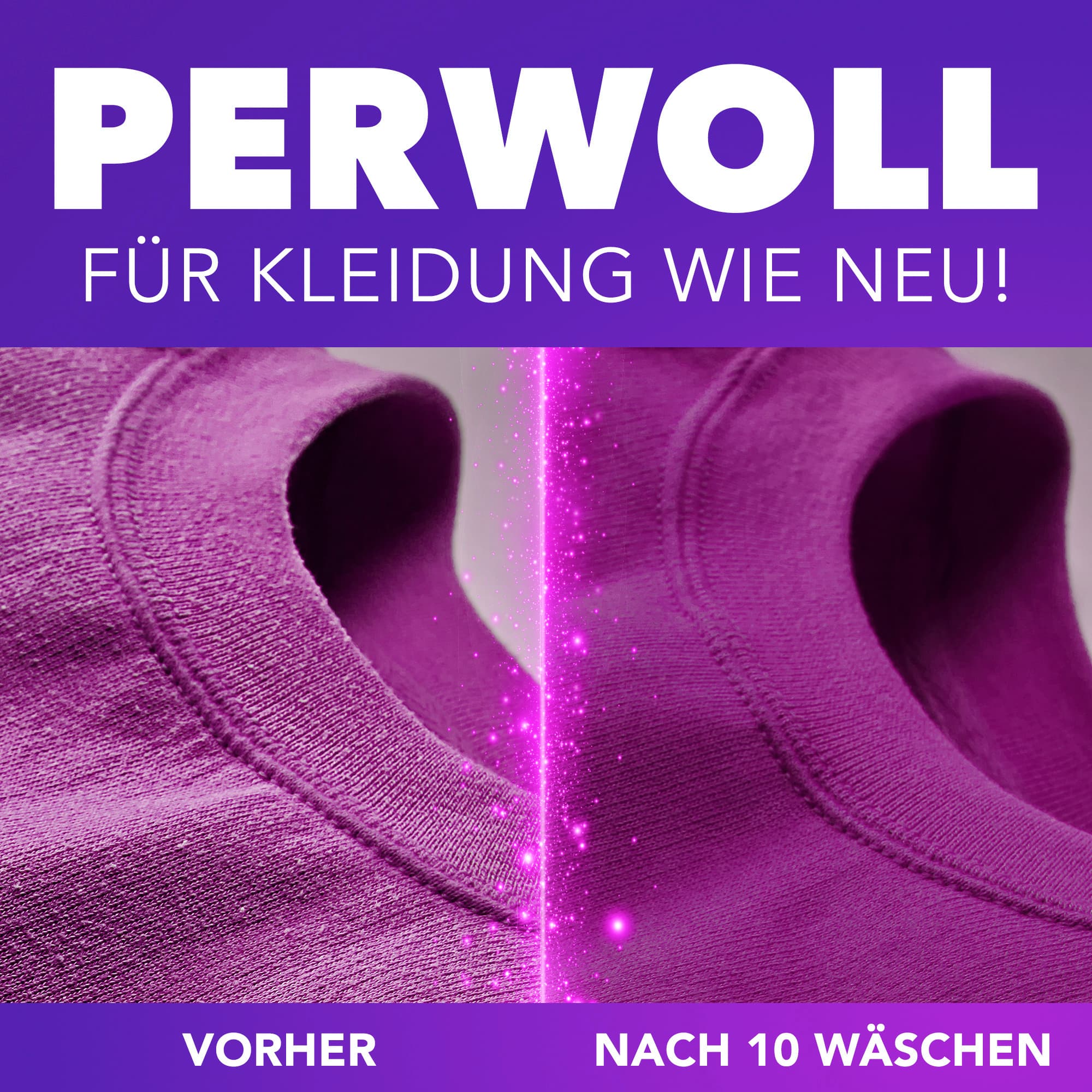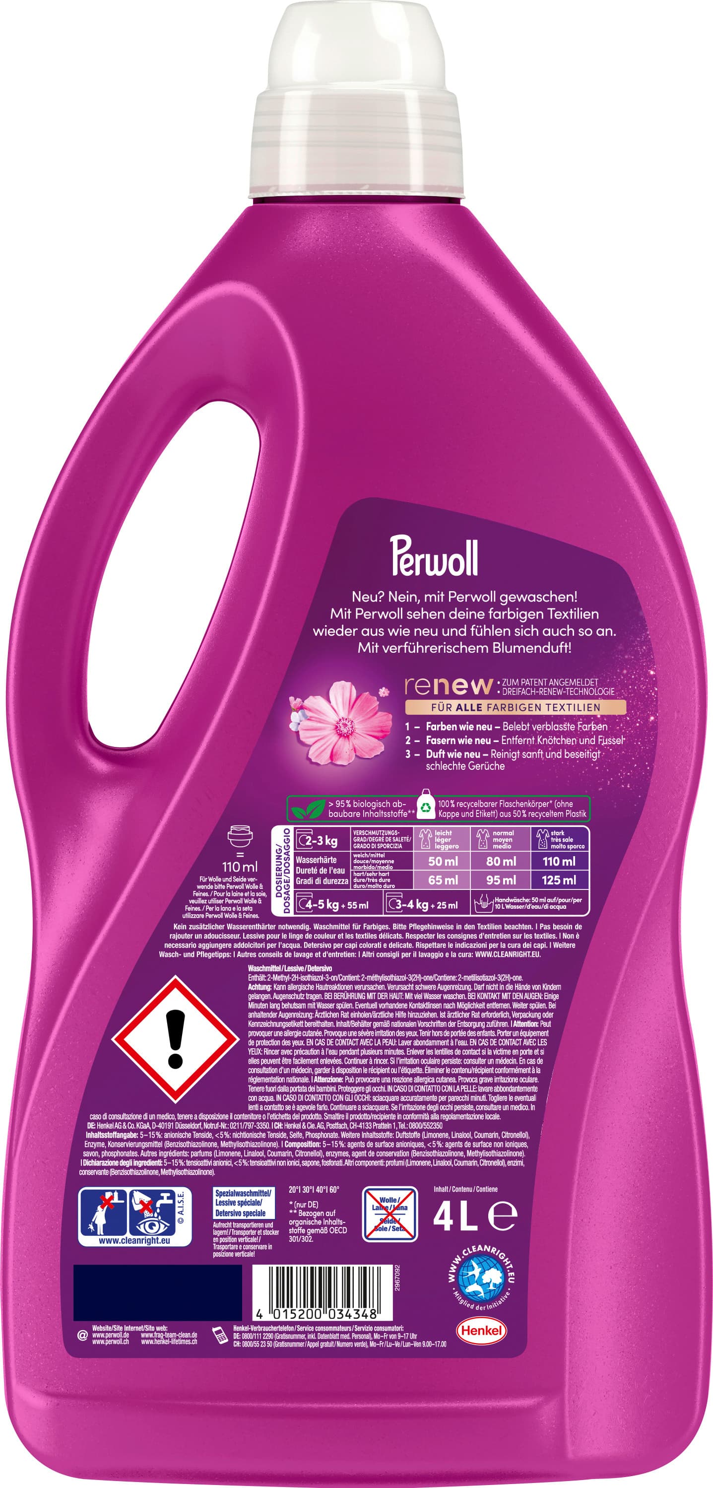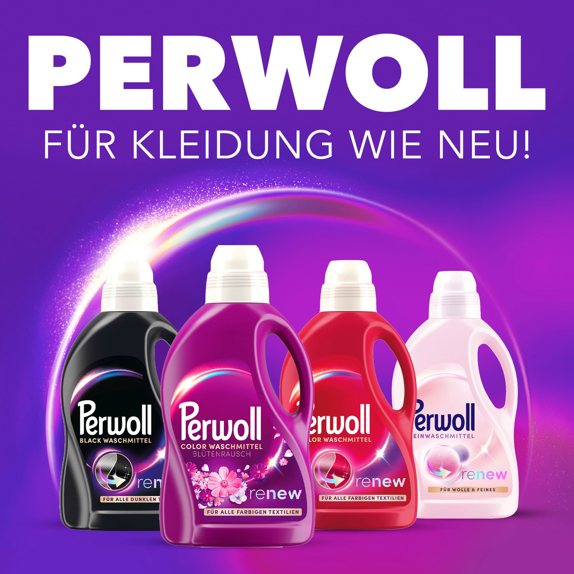 - PERWOLL Blütenrausch – Das flüssige Waschmittel mit Dreifach-Renew-Technologie pflegt farbige Textilien – für Wäsche, die aussieht und sich anfühlt wie neu und wunderbar duftet