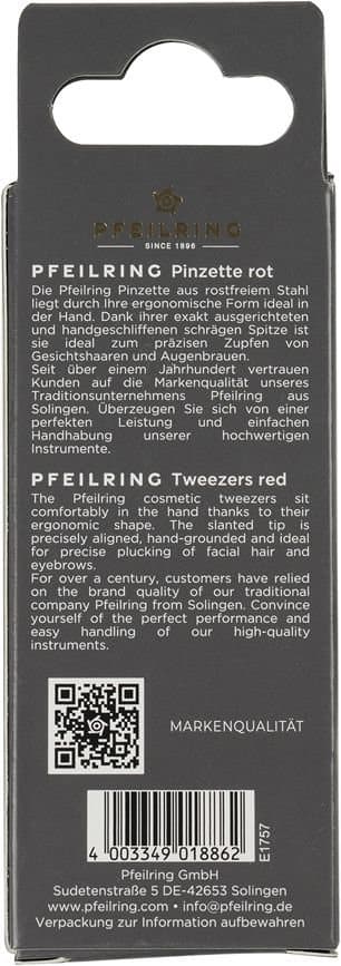 Die PFEILRING Pinzette aus rostfreiem Stahl liegt durch Ihre ergonomische Form ideal in der Hand. Dank ihrer exakt ausgerichteten und handgeschliffenen schrägen Spitze ist sie ideal zum präzisen Zupfen von Gesichtshaaren und Augenbrauen.