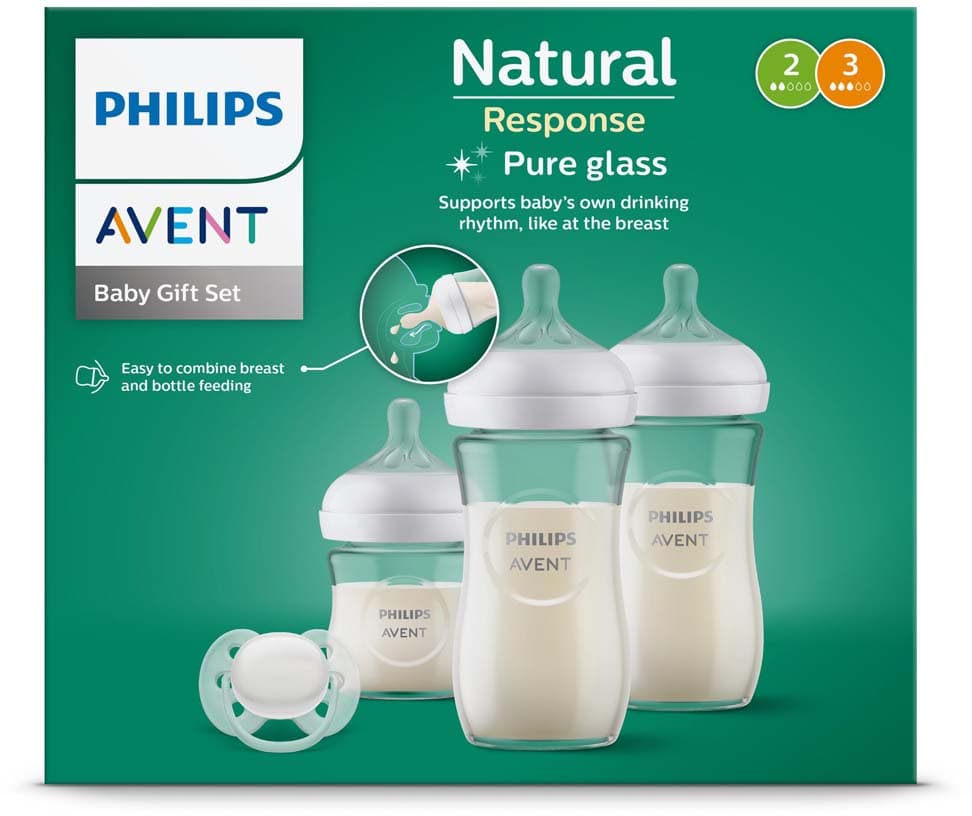 Das Natural Response Kleine Glasflaschen-Set für Neugeborene unterstützt den natürlichen Trinkrhythmus deines Babys. Der weiche, brustähnliche Sauger gibt Milch nur dann ab, wenn das Baby aktiv trinkt, sodass es in seinem eigenen Tempo trinken, schlucken und atmen kann – ganz wie beim Stillen. So wird die Kombination von Stillen und Flaschenernährung erleichtert. Das Set umfasst drei Flaschen: eine mit langsamer Durchflussrate für Neugeborene und zwei mit mittlerer Durchflussrate für ältere Babys, die mehr Milch benötigen. Das Anti-Kolik-Ventil reduziert Luft im Bauch und verhindert Koliken, während das tropfsichere Design Verschlucken minimiert.
