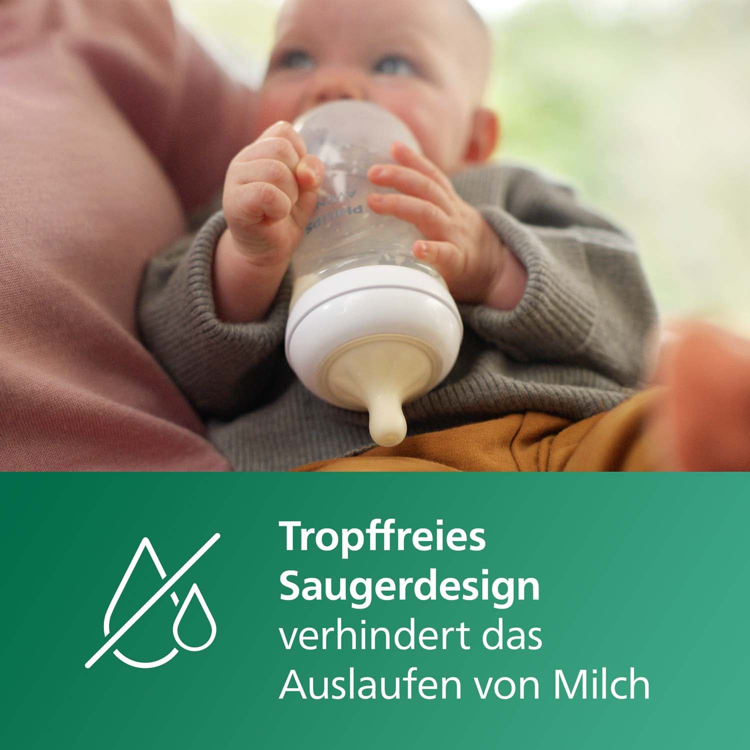 | Lieferumfang | 1x 120ml Babyflasche, 2x 240ml Babyflasche, 1x Saugerstufe 2, 2x Saugerstufe 3, 1x ultra soft Schnuller 0-6 Monate |