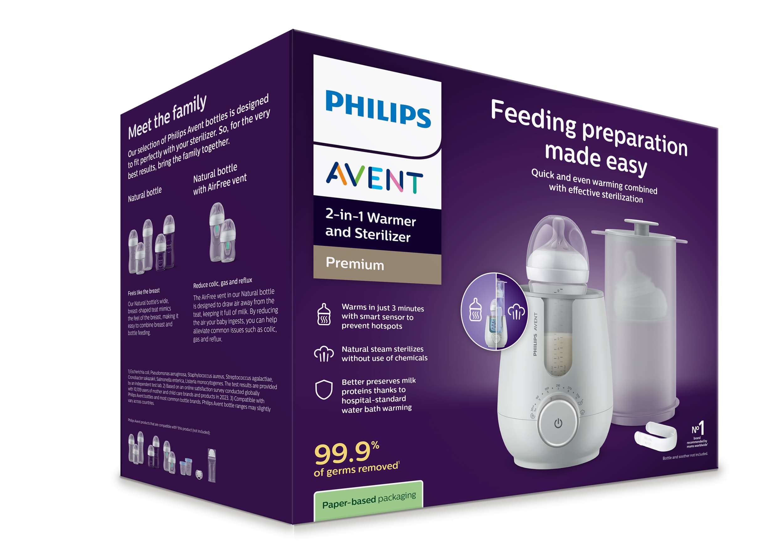 Der Philips Avent Premium 2-in-1 Flaschenwärmer und Sterilisator SCF359/20 bietet eine sichere und praktische Lösung für die tägliche Babyernährung. Innerhalb von nur 3 Minuten wird Milch gleichmäßig erwärmt, ohne Hotspots zu erzeugen, dank dem bewährten Wasserbad-Erwärmungssystem nach Krankenhausstandard. Diese Methode schützt wertvolle Milchproteine, die für das Immunsystem des Babys wichtig sind.