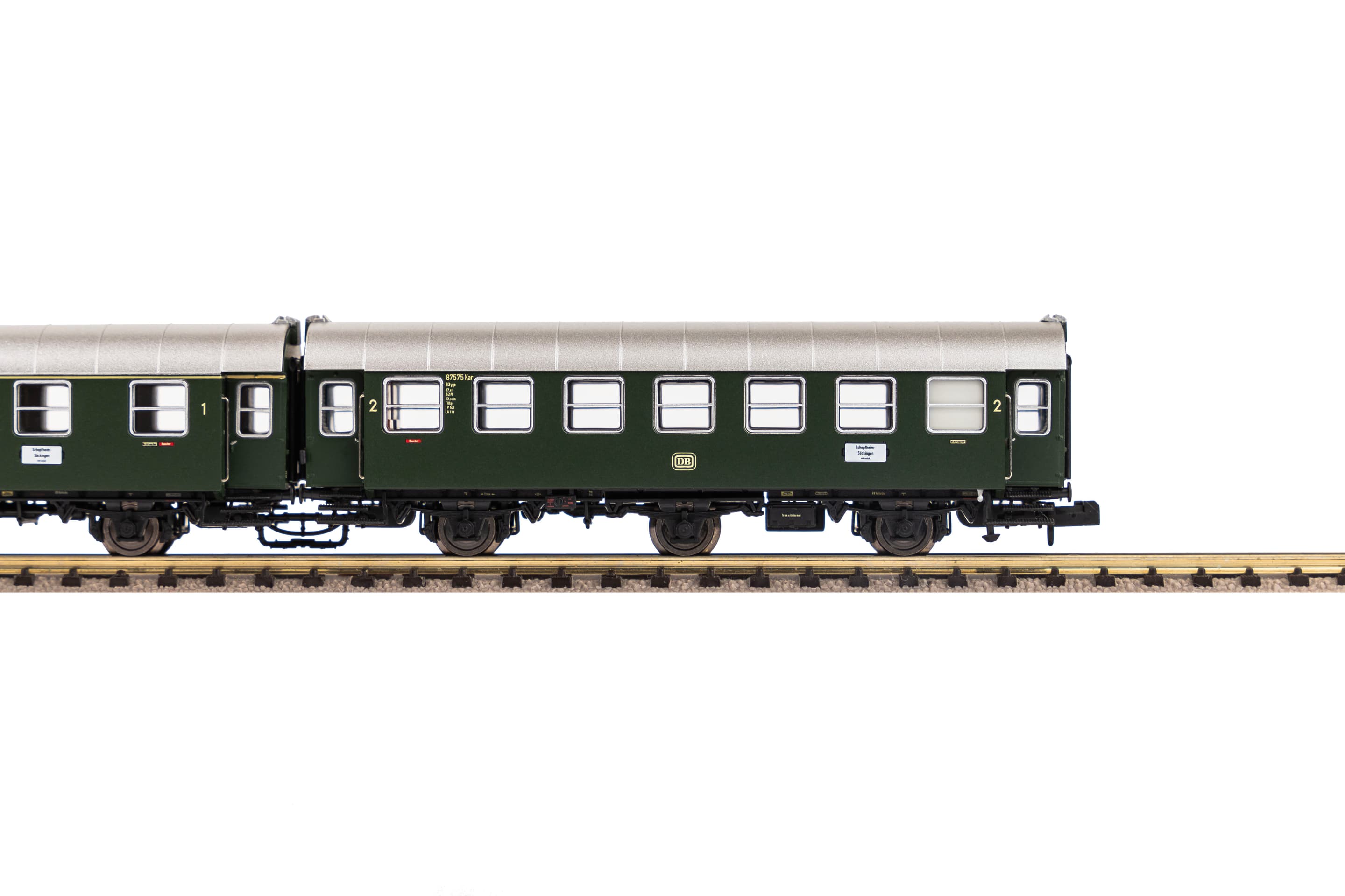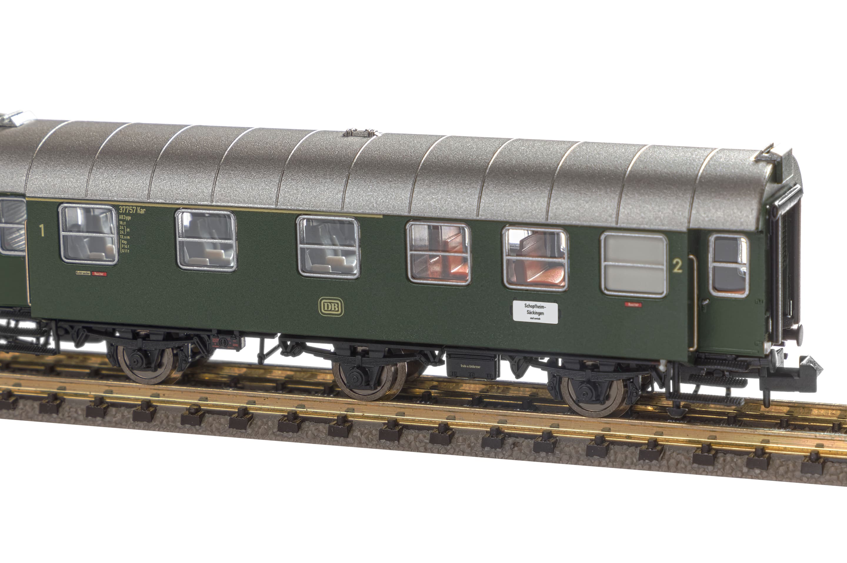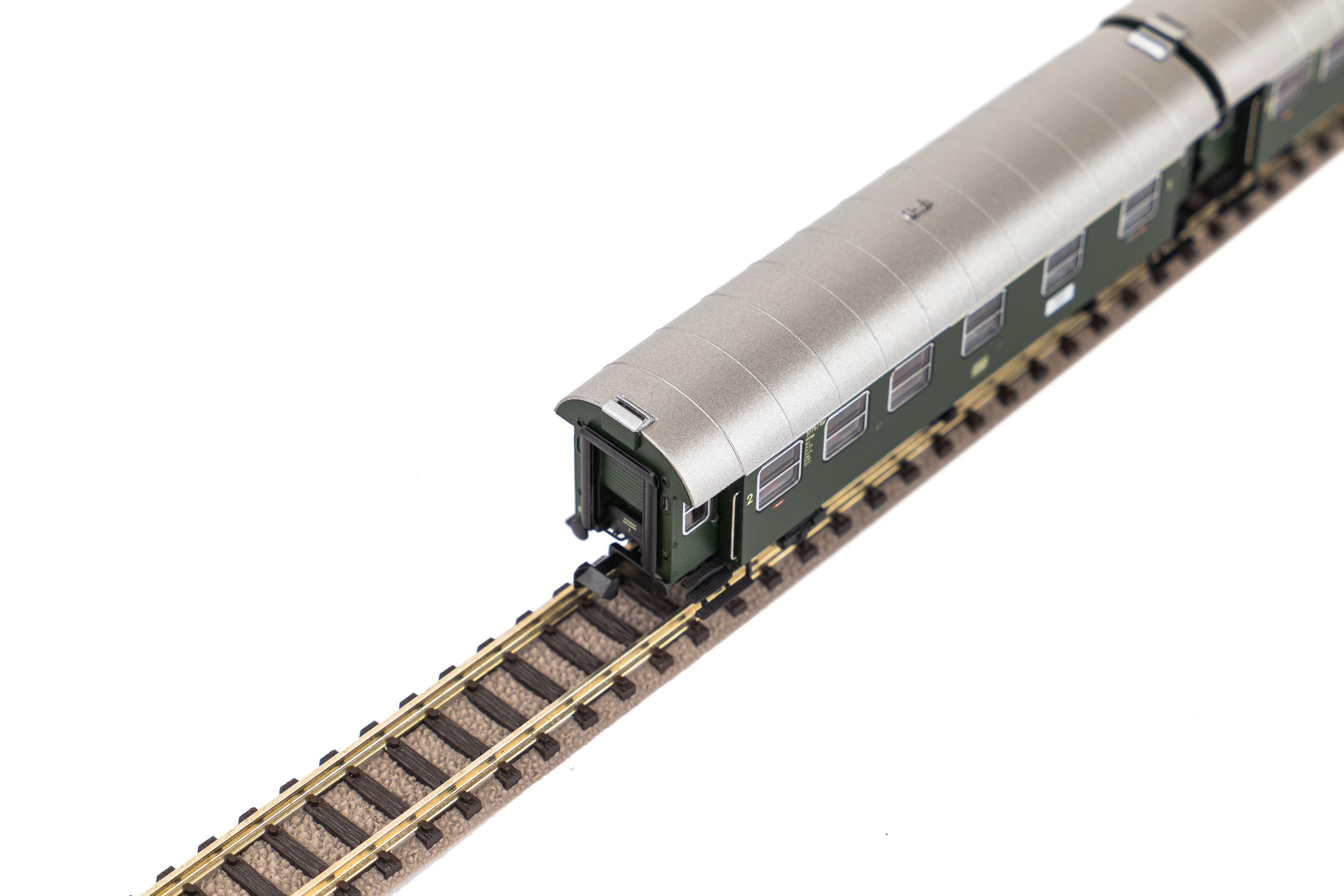 Neuheit 2024: Ab Mitte der 1950er-Jahre entstanden durch Umbau von Länderbahn-Abteilwagen bei der Deutschen Bundesbahn zwei Reisezug-Wagenserien, die als Umbauwagen bezeichnet werden. Anders als beim Vorbild wurde für die PIKO Modelle der dreiachsigen Umbauwagen nicht auf vorhandene Teile zurückgegriffen. Bei den Wagen handelt es sich um vollständige Neukonstruktionen. Die maßstäblichen Fahrzeuge geben das Original bis ins kleinste Detail wieder. Einzeln angesetzte Griffstangen gehören genauso zur zeitgemäßen Konstruktion wie bündig abschließende, glasklare Fenster und eine detaillierte Inneneinrichtung. Die liebevolle Gestaltung setzt sich am Wagenboden fort. Er überzeugt unter anderem durch freistehende Leitungen und ein filigranes Bremsgestänge. Wie das Vorbild erscheinen auch die N Umbauwagen als kurzgekuppelte Pärchen im Handel und verfügen über einen vorbildnahen Abstand zwischen den Wagen. Zusammen mit dem PIKO Lokomotivmodell der Baureihe E 32 (Art.-Nr. 40820) lassen sich vorbildgerechte Zugverbände bilden, die zum absoluten Blickfang auf jeder Anlage werden.