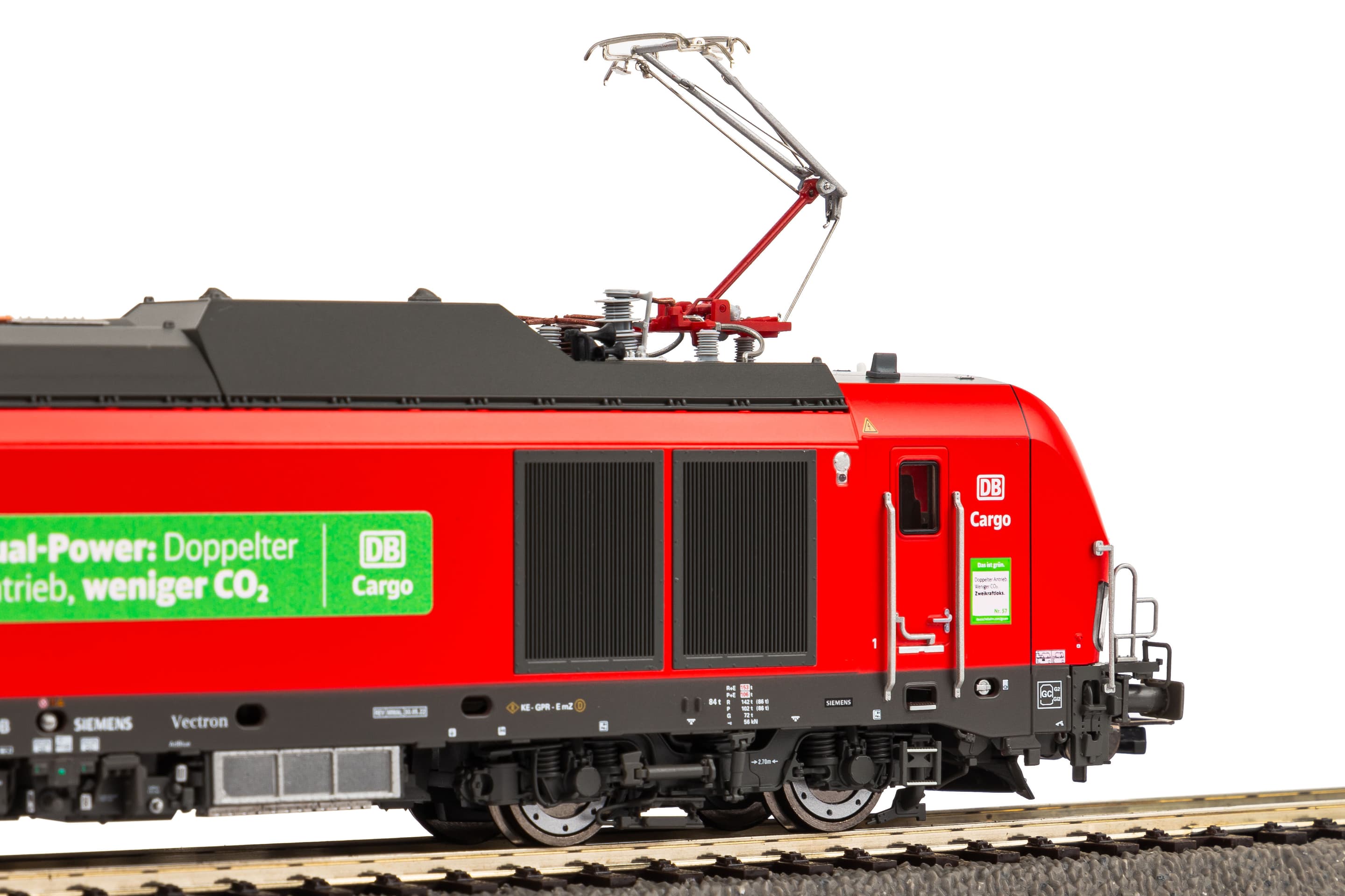 Neuheit 2024: Die großen Seitenflächen mit den markanten Lüftern und das Dach mit einem Stromabnehmer prägen das Erscheinungsbild des modernen Vectron Dual Mode. Großer Wert wurde bei Konstruktion und Werkzeugbau auch auf Details gelegt:äußerst plastisch wirkende Gravuren der Lüftungsgitter und Drehgestelle mit hervorragender optischer Tiefenwirkung unterstreichen dies. Technisch führt das Modell die bewährte Linie der PIKO Konstruktionen fort. Als Antrieb dient ein kräftiger Mittelmotor, zwei Schwungmassen sorgen für hervorragende Laufeigenschaften und diagonal angeordnete Haftreifen ermöglichen die Beförderung langer Züge. Im Digitalbetrieb können Führerstands- und Führerpultbeleuchtung digital geschaltet werden. Hierfür verfügt das Modell ab Werküber einen PSD XP Sound-Decoder, der zudem in Kombination mit dem großen Lautsprecher für besondere Sounderlebnisse auf der Modellbahnanlage sorgt.