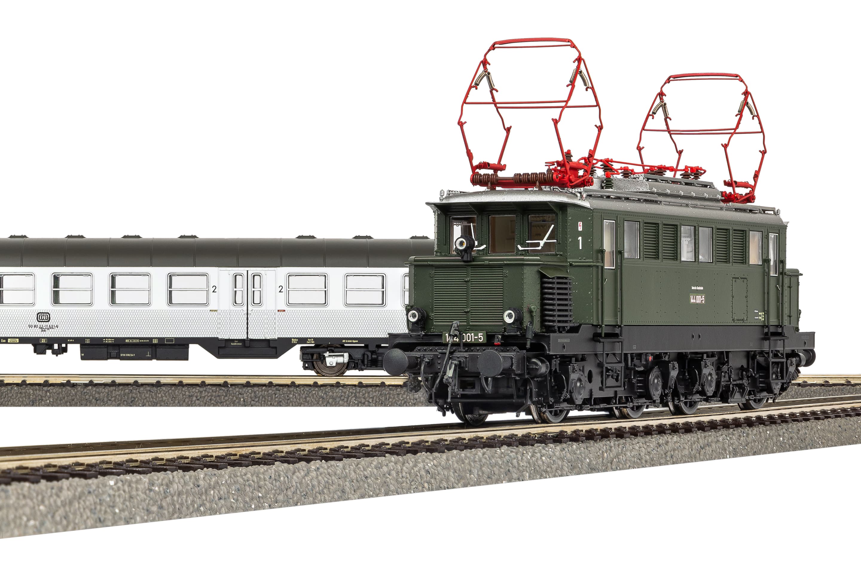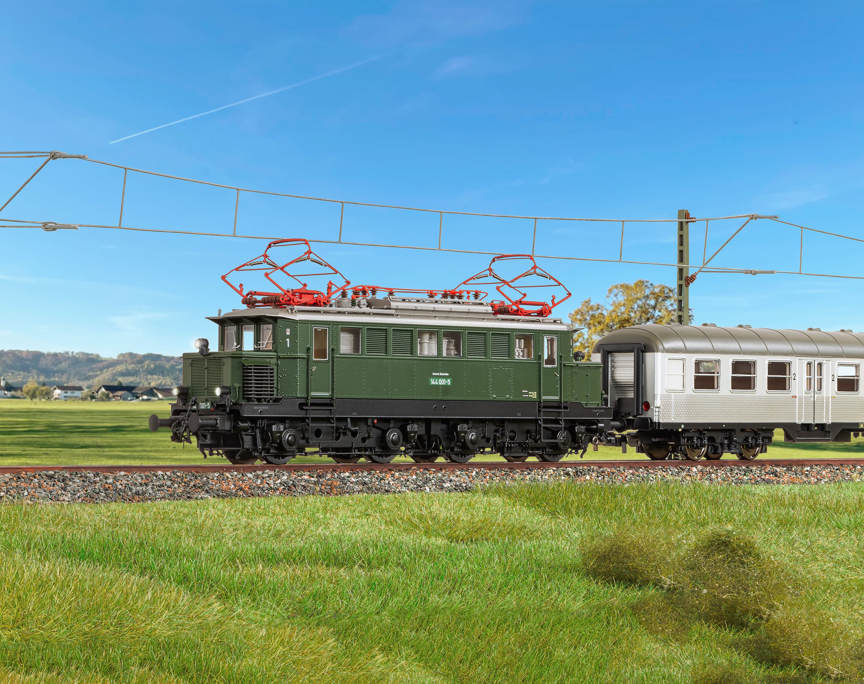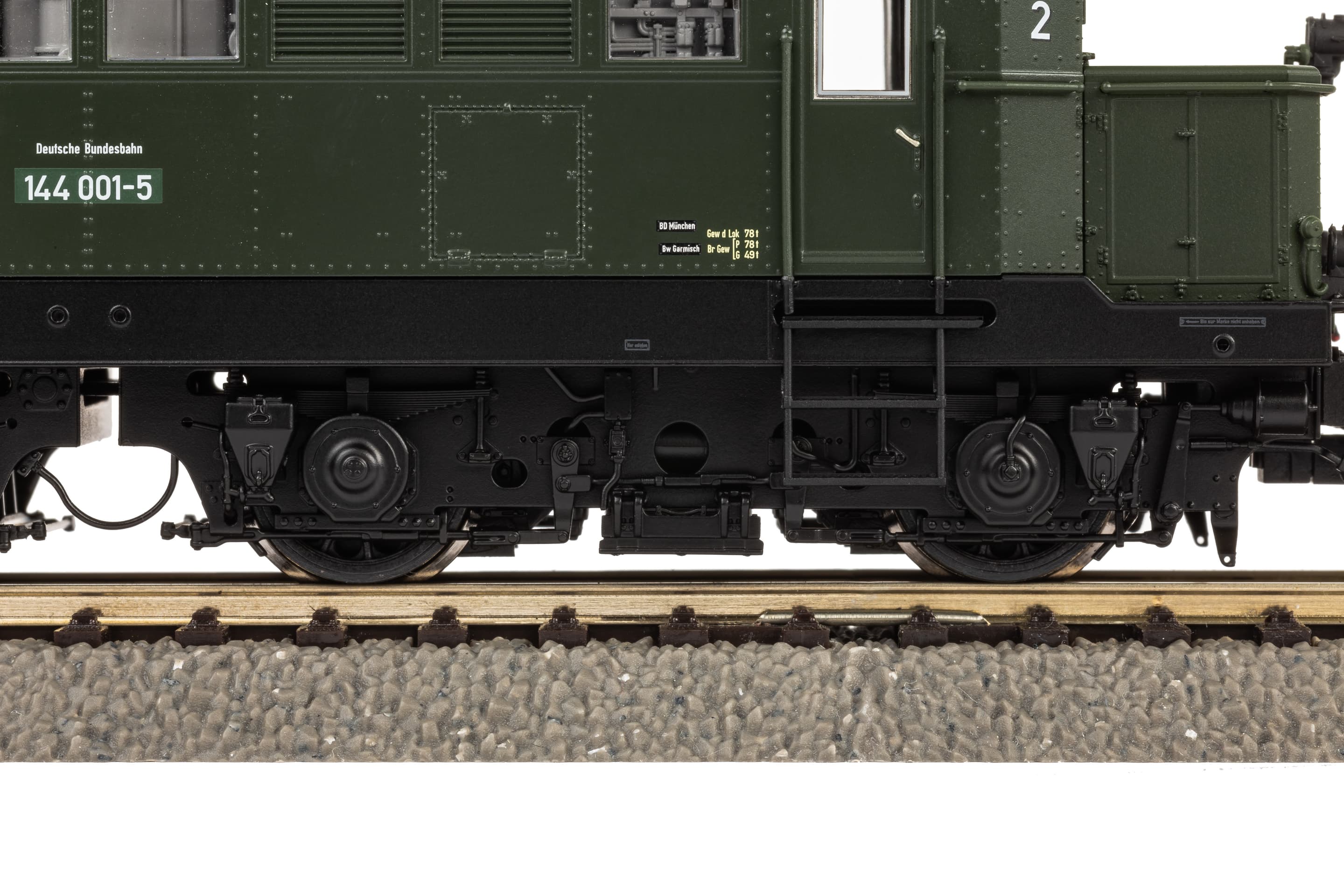 Neuheit 2024: Die Erfolgsgeschichte der Baureihe E 44 begann 1930 mit der von den Siemens-Schuckertwerken gebauten Vorserienlok E 44 001. Ihr folgte ab 1932 die erste Serie von laufachslosen Elektroloks mit Einzelachsantrieb in Deutschland. Eine Erfolgsgeschichte ist auch die PIKO E 44. Im Rahmen dieses Projekts wurde erstmals die bekannte Vorserienlok E 44 001, spätere 144 001-5, als Großserienmodell umgesetzt. Die Miniaturen der Vor-, wie auch der Serienloks brillieren durch ihre exakt maßstäbliche Umsetzung. Gleichermaßen scharfe wie präzise Gravuren am Gehäuse sorgen für enorme plastische Tiefe und unterstreichen den exzellenten Gesamteindruck. Dies setzt sich auch im Fahrwerksbereich mit zahlreichen extra angesetzten Teilen an den markanten Drehgestellen fort. Identisch in der Modellqualität, wurden dennoch die Unterschiede zwischen den Vorbildlokomotiven in größtmöglicher Detailtiefe im Modell umgesetzt. Auch technisch lässt das Modell kaum Wünsche offen: Der Antrieb ist gleichermaßen bewährt wie robust, eine PluX22-Schnittstelle ermöglicht die kinderleichte Nachrüstung eines Digital-Decoders. In dieser Konstellation ist beispielsweise das Schalten von Maschinenraum- und Führerstandsbeleuchtung möglich.