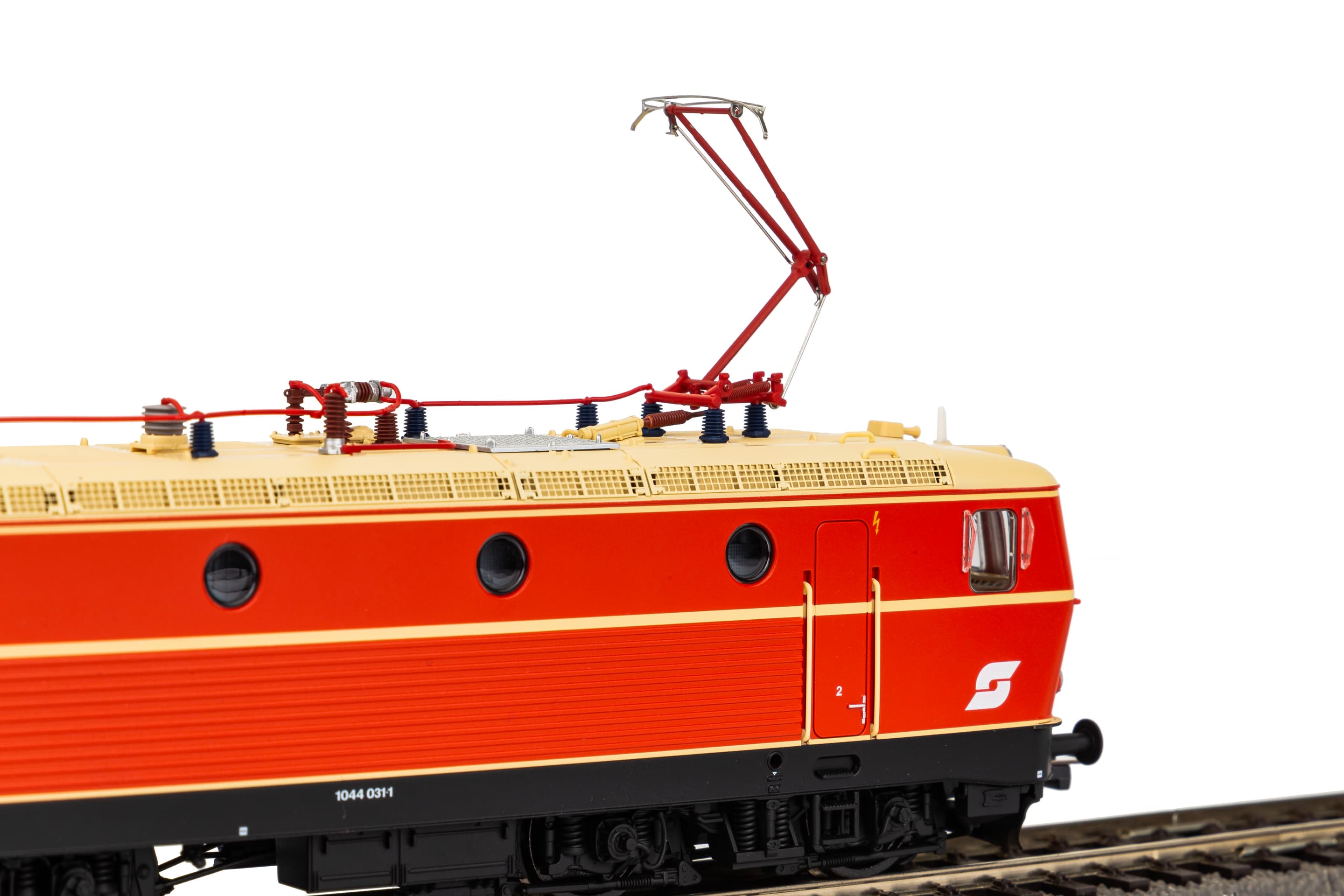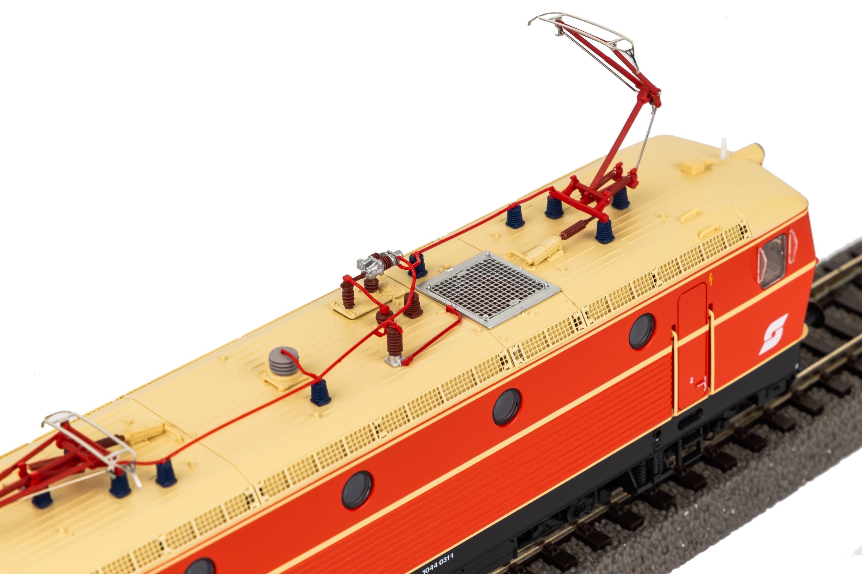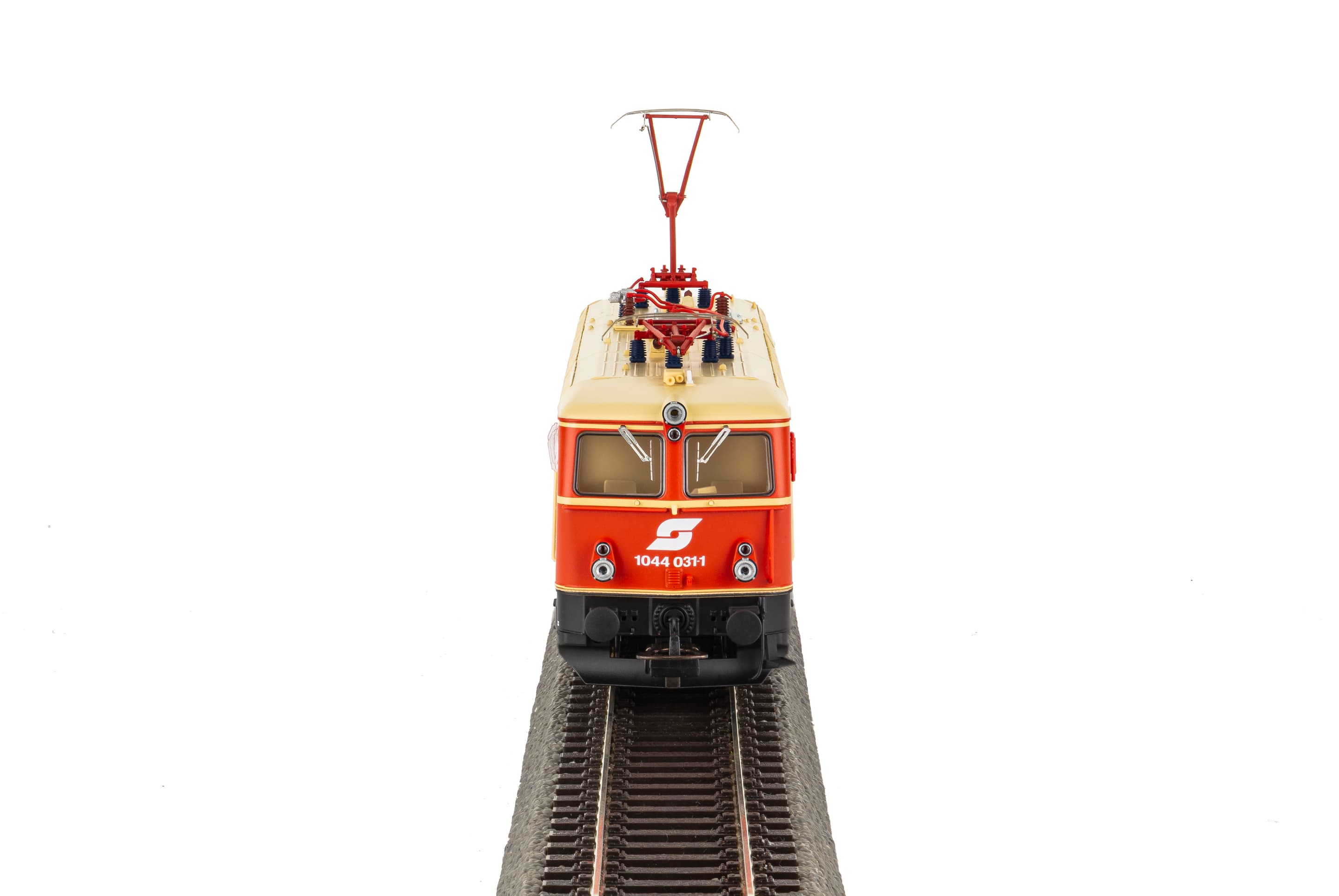 Neuheit 2023: Variante der Rh 1044 in der Ausführung derÖBB in Epoche V. Das charaktervolle Lokgesicht des einstigenÖBB-Paradepferds wurde in der Modellumsetzung hervorragend getroffen, ebenso die markante Seitenpartie der Fahrzeuge, die mit den ausgeprägten Sicken und den typischen„Bullaugen“ durchaus Herausforderungen an den Formenbau stellte. Der dabei entstandene Eindruck idealer optischer Wirkung setzt sich in den Drehgestellen der Lokomotive fort. Nicht zuletzt weiß die 1044 technisch zuüberzeugen: Ein fünfpoliger PIKO Motor, auf dessen Welle zwei fein gewuchtete Schwungmassen sitzen, sorgt für gleichmäßigen Vortrieb. Modellbahner, die den Digitalbetrieb bevorzugen, profitieren von der modernen PluX22-Schnittstelle– sie erlaubt den Einbau eines Digitaldecoders mit wenigen Handgriffen. Der heute obligatorische Lichtwechsel wurde in zeitgemäßer LED-Technik realisiert.