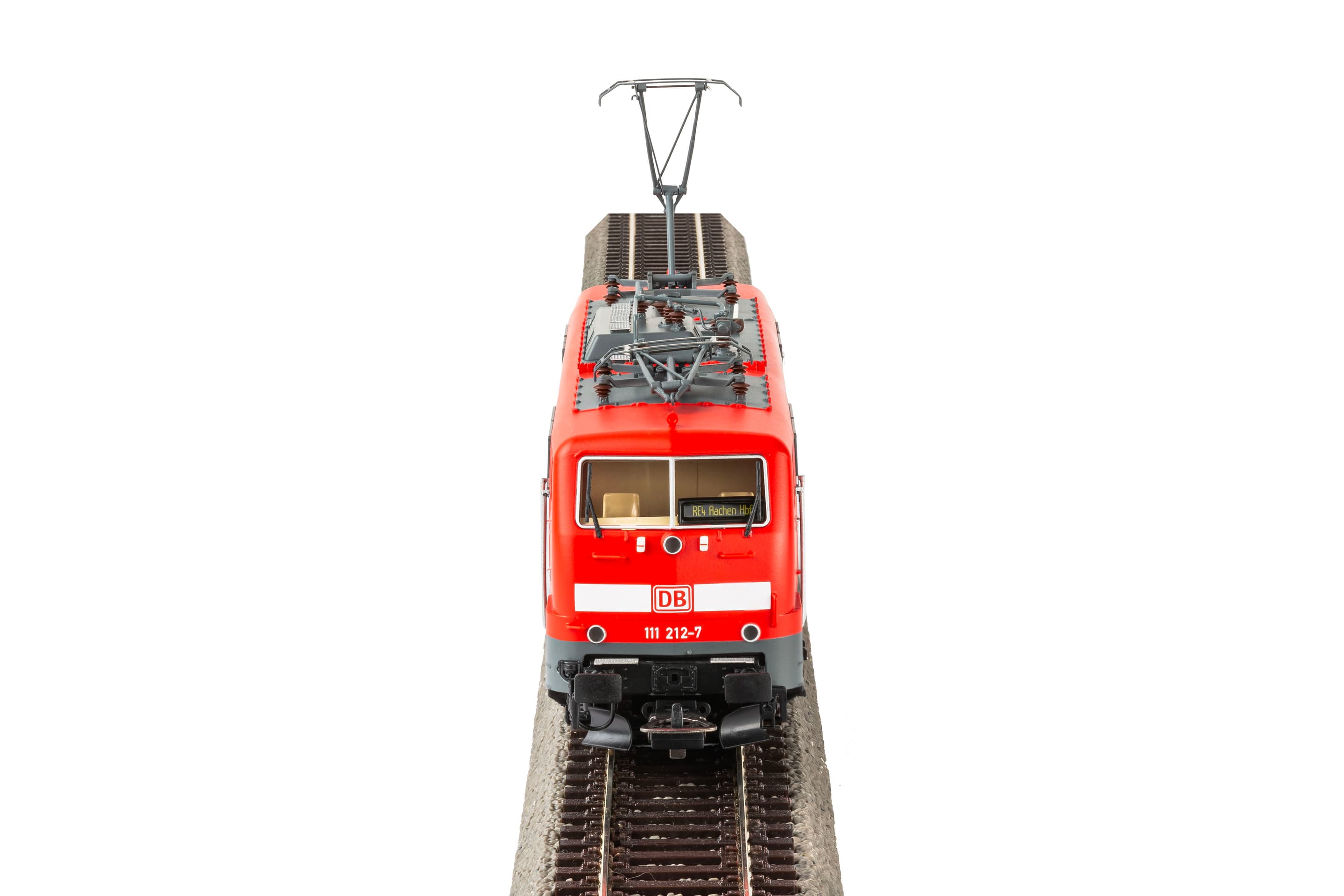Neuheit 2024: Elektrolokomotive der Baureihe 111 als Gebrauchtzug der DB AG in Epoche VI. Durch die glasklaren Fenster an der Lok-Seitenwand ist die detailliert nachgebildete Maschinenraumeinrichtung erkennbar. Die stimmige Erscheinung wird durch die feingliedrigen Metall-Stromabnehmer und die scharf gravierten Drehgestelle perfekt abgerundet. Das Modell verfügtüber eine beleuchtete, zuschaltbare Zugzielanzeige sowie digital schaltbare Beleuchtungen im Führerstand und Maschinenraum. Die BR 111 von PIKO ist ab Werk mit einem passenden PSD XP Sound-Decoder mit größtmöglichem Lautsprecher ausgestattet.
