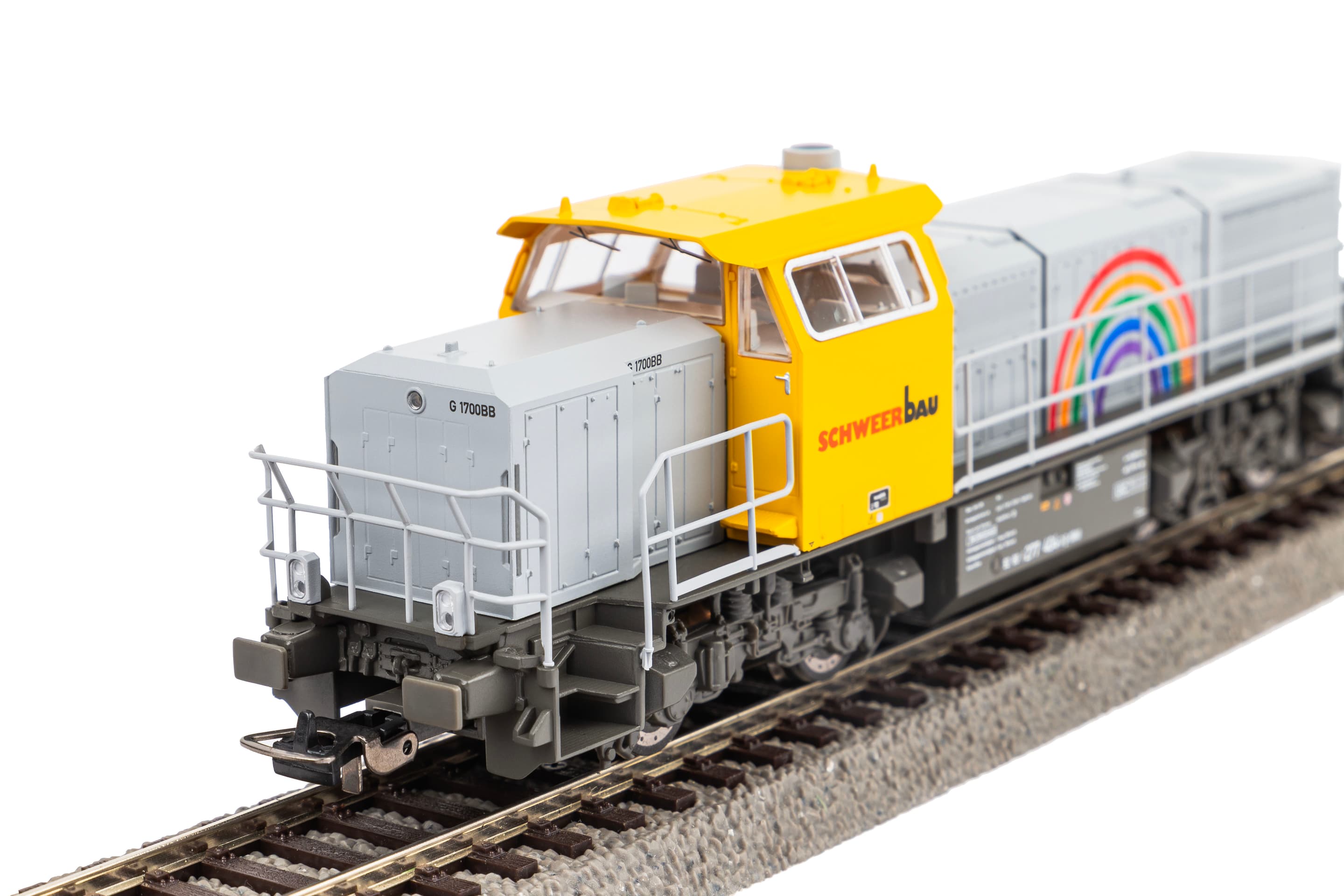 Neuheit 2024: Diesellokomotive G1700 der Schweerbau GmbH und Co. KG in Epoche VI. Das Modell verfügtüber eine konturenscharfe Lackierung und Bedruckung und wird durch das Design garantiert zum Blickfang auf jeder Anlage. Zur unkomplizierten Nachrüstung eines Decoders verfügt das Modellüber eine Digitalschnittstelle nach NEM 652.