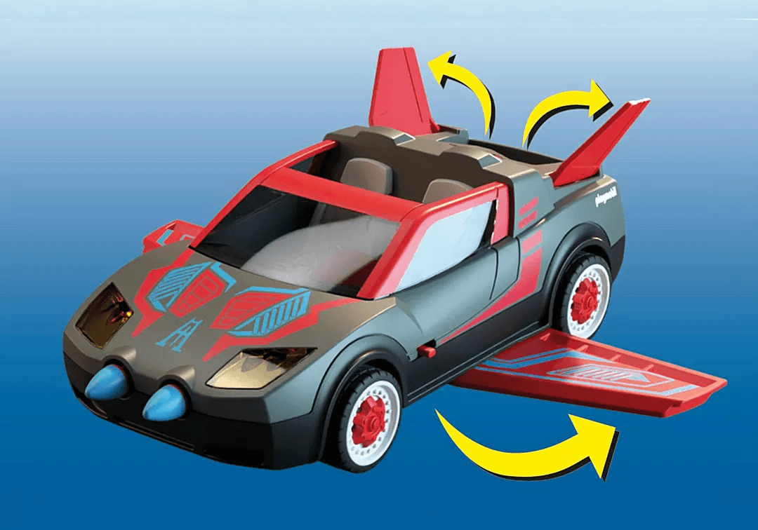 Bereit für jede Mission – ob zu Land, in der Luft oder auf dem Wasser! Mit dem Playmobil Helden-Multifunktionsfahrzeug aus der Heroes-Serie erleben Kinder ab 4 Jahren spannende Abenteuer mit dem Helden Adam Maxx und seinem Gegenspieler Revolt. Das wandelbare Fahrzeug ist ausgestattet mit Frontkanonen, ausklappbaren Tragflächen, Propellerturbinen und Schwimmkörpern, die es zum echten Allrounder machen.