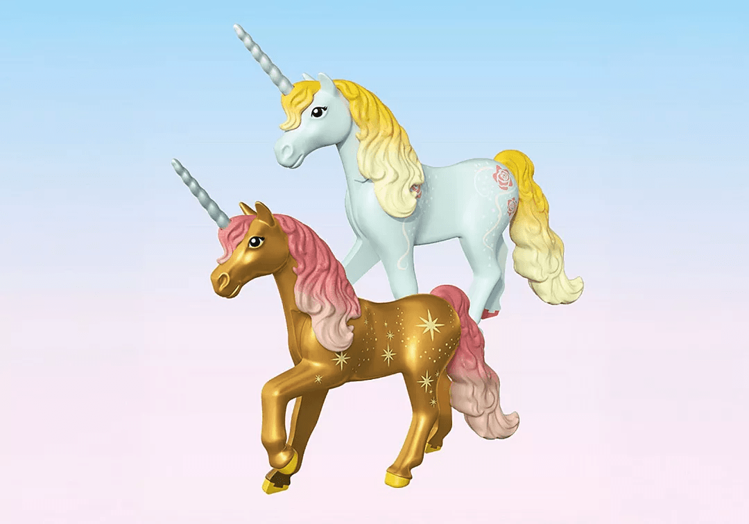 Gemeinsam mit den fröhlichen Joylingen kümmern sich die Feen um das majestätische Goldeinhorn, das im offenen Stall liebevoll versorgt wird. Nach einem ereignisreichen Tag kuscheln sich alle in ihre gemütlichen Betten – bereit für neue Abenteuer!