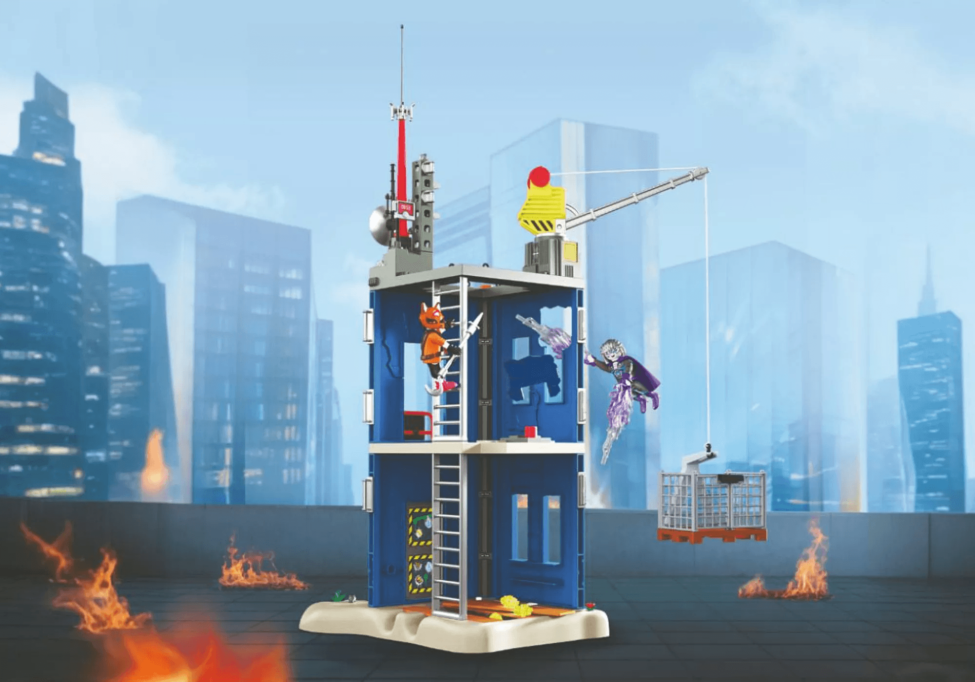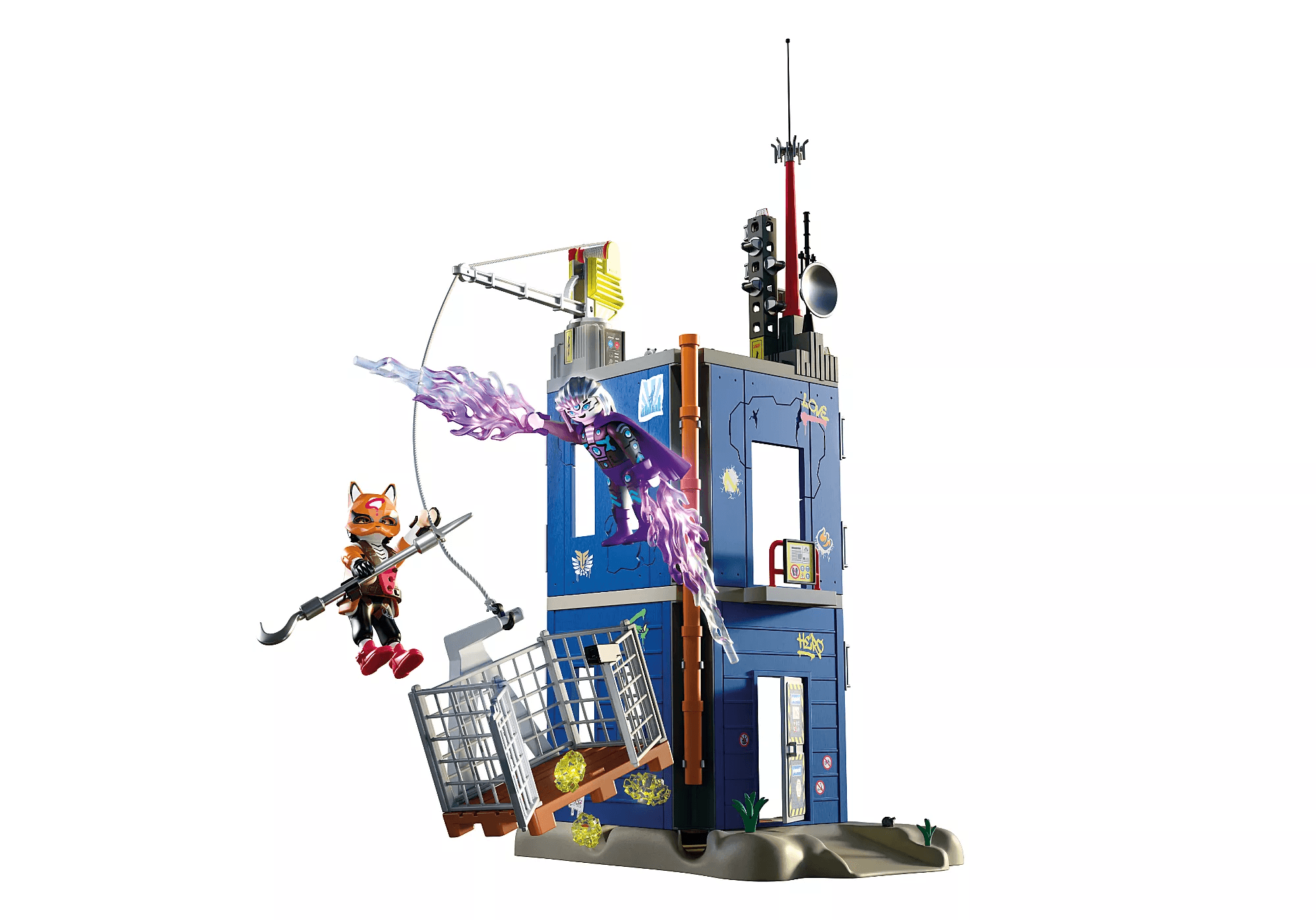 Einen detailreichen Helden-Tower mit beweglichem Kran und Käfigfalle