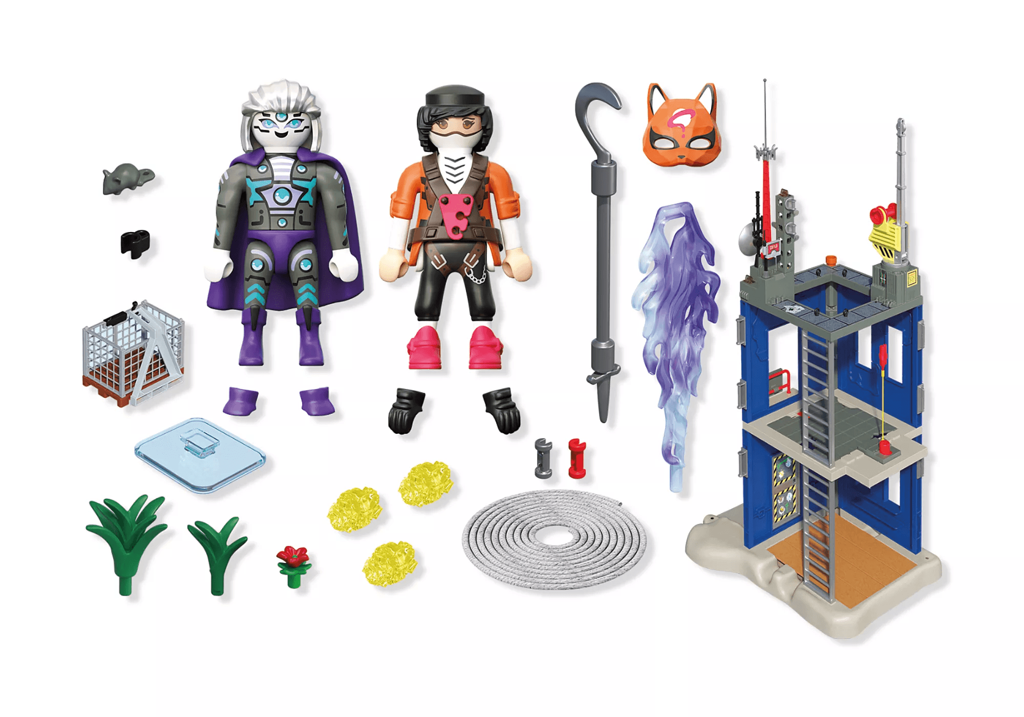 Tauche ein in die Welt von PLAYMOPOLIS! Mit dem Set „Duell am Helden-Tower“ erleben Kinder spannende Abenteuer rund um die mutige Fuchs-Heldin Blazetail und den außerirdischen Superschurken Kronar. Der Helden-Tower dient als geheime Kommandozentrale – bis Kronar angreift, um die magischen Energiesteine zu erobern!