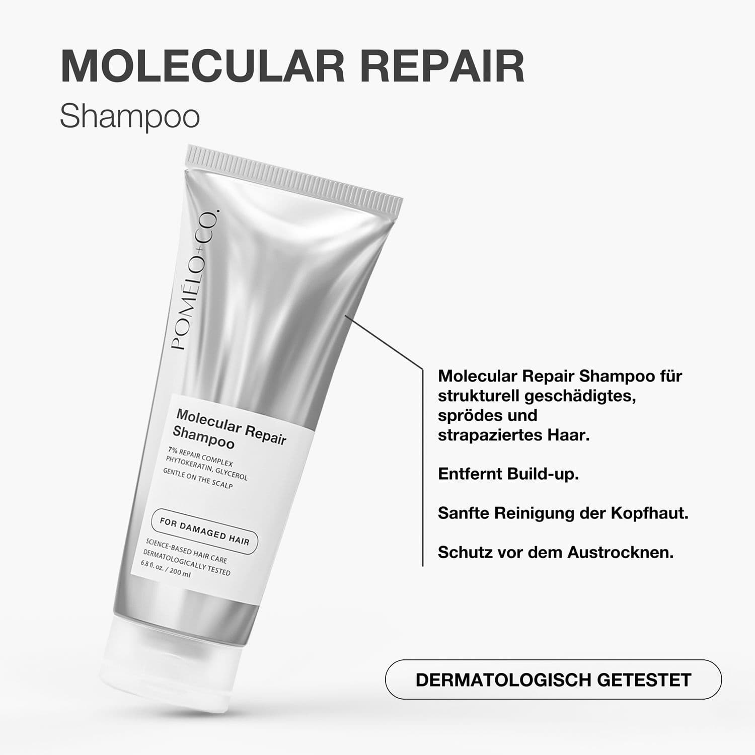 | Anwendungshinweis | Eine kleine Menge auf die Kopfhaut und den Haaransatz einmassieren, kurz einwirken lassen und anschließend gründlich ausspülen. Anschließend Molecular Repair Conditioner verwenden. |