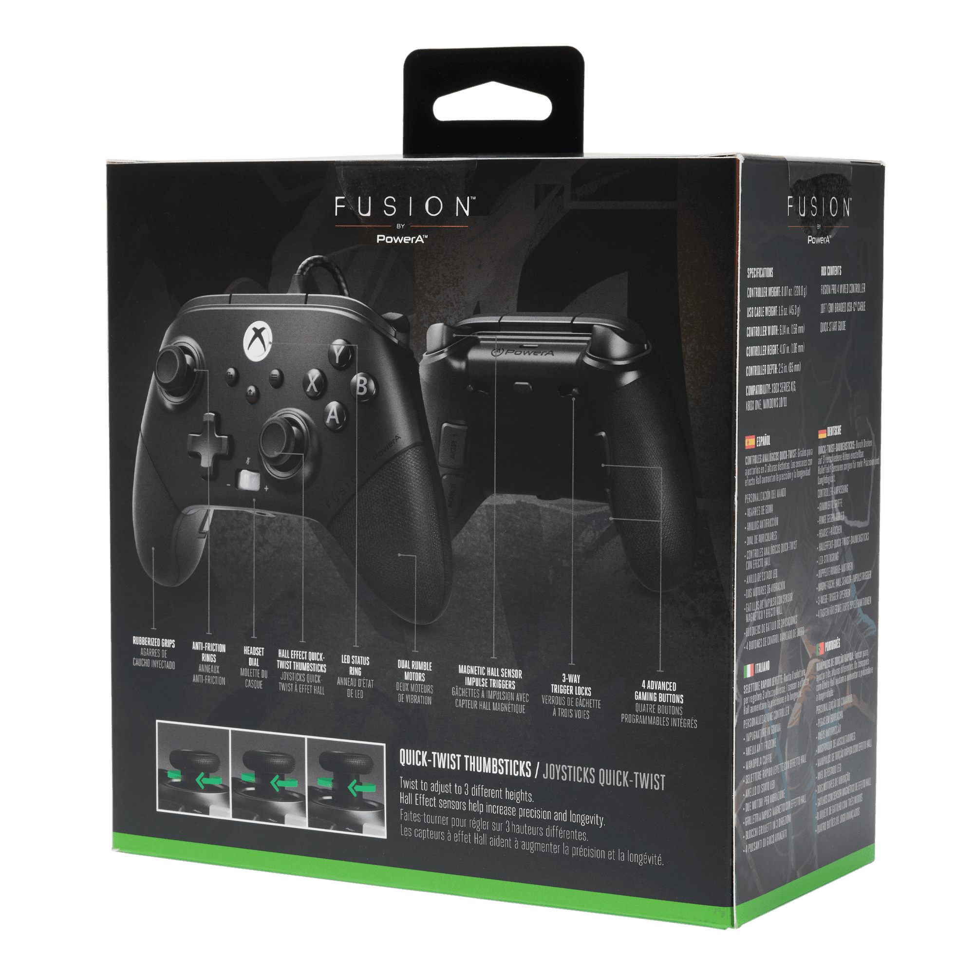Verbessere dein Spiel mit dem offiziell lizenzierten, kabelgebundenen PowerA FUSION Pro 4-Controller für Xbox Series X|S.Dieses Premium-Gamepad verfügt über Komponenten auf Wettkampfniveau und leistungsstarke Funktionen für professionelles Gameplay wie Hall-Effekt-Module in den Daumensticks, die für Präzision und Langlebigkeit sorgen.Mit unseren zum Patent angemeldeten Quick-Twist-Daumensticks kannst du die Höhe der Daumensticks mit einer einfachen Drehung auf 3 verschiedene Positionen einstellen.Außerdem Funktionen, die du von FUSION kennst, wie 4 programmierbare Tasten für erweiterte Spielfunktionen, 3-Wege-Trigger-Sperren, Impulstrigger und mehr.Passe verschiedene Einstellungen auf deinem Controller mit der kostenlosen PowerA Gamer HQ-App an.Enthält ein geflochtenes, extralanges 3-Meter-USB-C®-Kabel.Funktioniert hervorragend unter Windows 10/11.