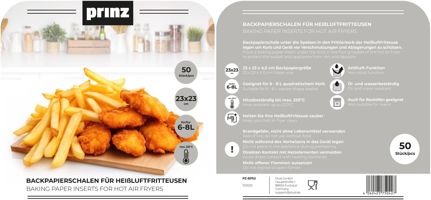 PRINZ Backpapierschalen für Heißluftfritteusen 6-8l