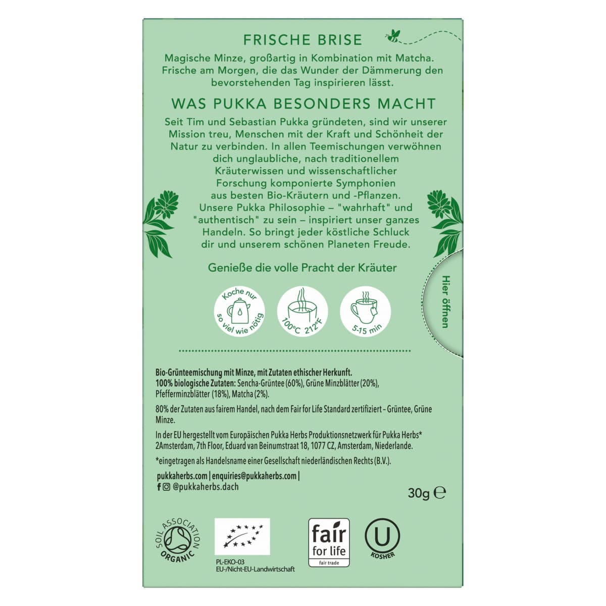 | Kontaktmöglichkeit | kontakt@pukkaherbs.de |