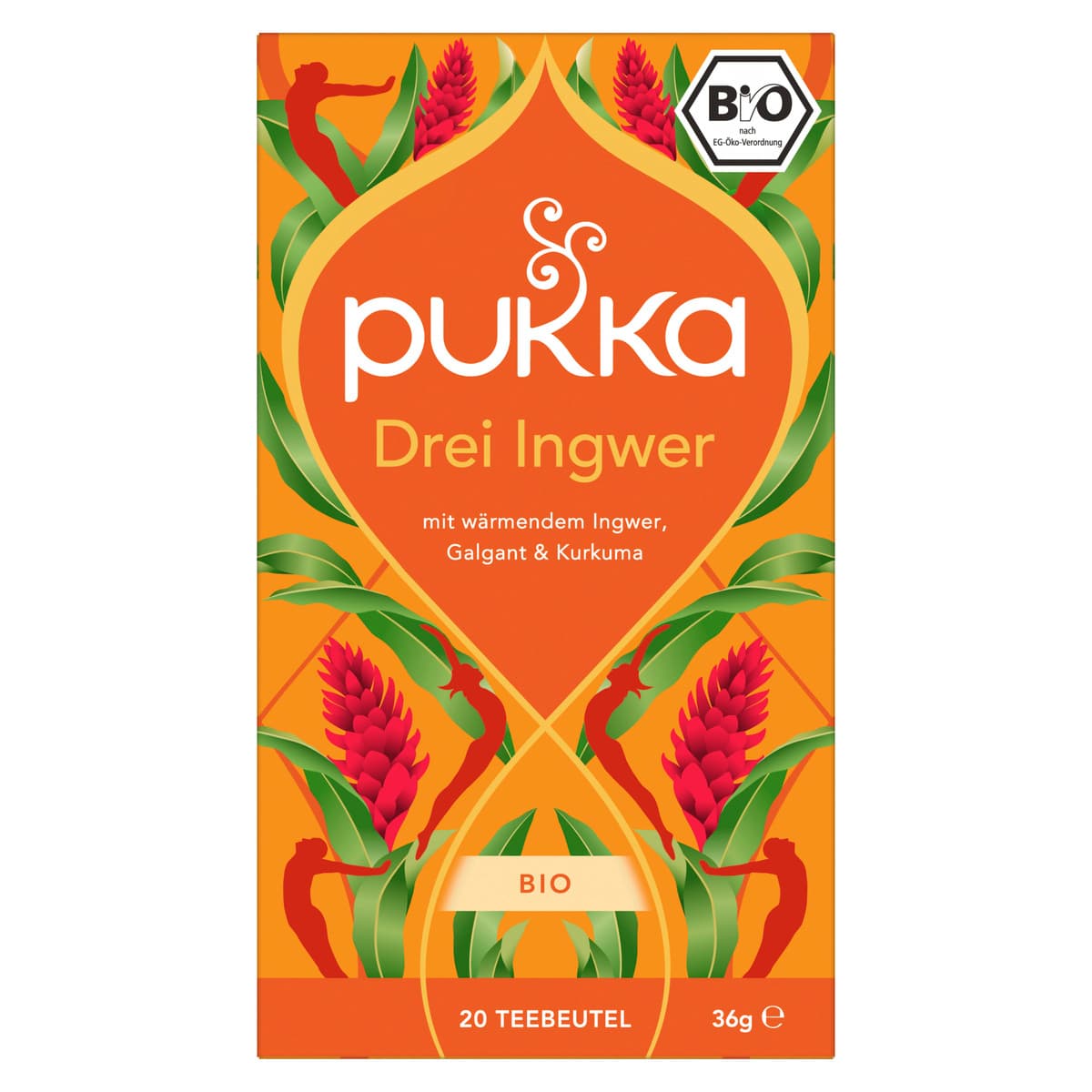 Der Pukka BIO Tee Drei Ingwer ist eine wärmende Teemischung, die aus drei besonderen Wurzeln komponiert wird. Die Komposition aus Ingwer, Galgant und goldgelber Kurkuma sorgt für ein belebendes Geschmackserlebnis.