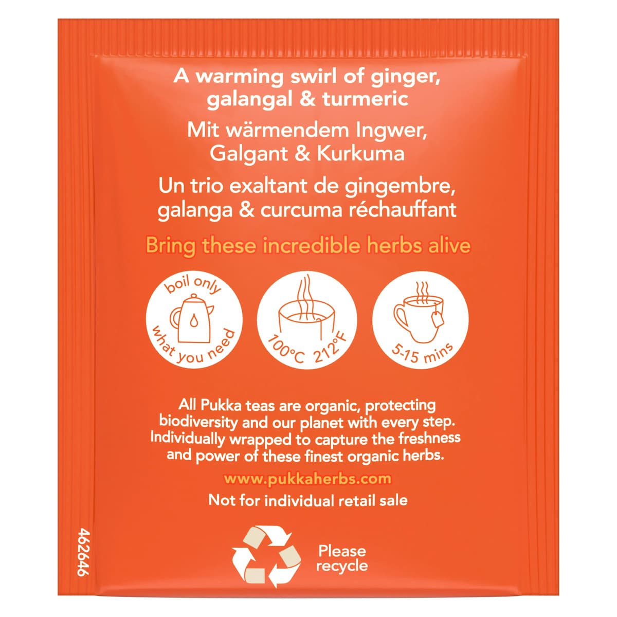 Diese Teekreation vereint die feurige Note von Ingwer mit der würzigen Schärfe von Galgant und der erdigen Tiefe von Kurkuma. Die verwendeten Kräuter und Pflanzen werden sorgfältig ausgewählt und stammen aus ethischem Handel. Pukka engagiert sich durch verschiedene Initiativen für Nachhaltigkeit und faire Bedingungen für die Anbaupartner. Die Teemischung wird in England nach ayurvedischen Prinzipien entwickelt, um eine harmonische Balance der Aromen zu schaffen. Für die Zubereitung wird empfohlen, einen Teebeutel mit frisch aufgekochtem Wasser zu übergießen und den Tee bis zu 15 Minuten ziehen zu lassen, damit sich die Aromen vollständig entfalten können.