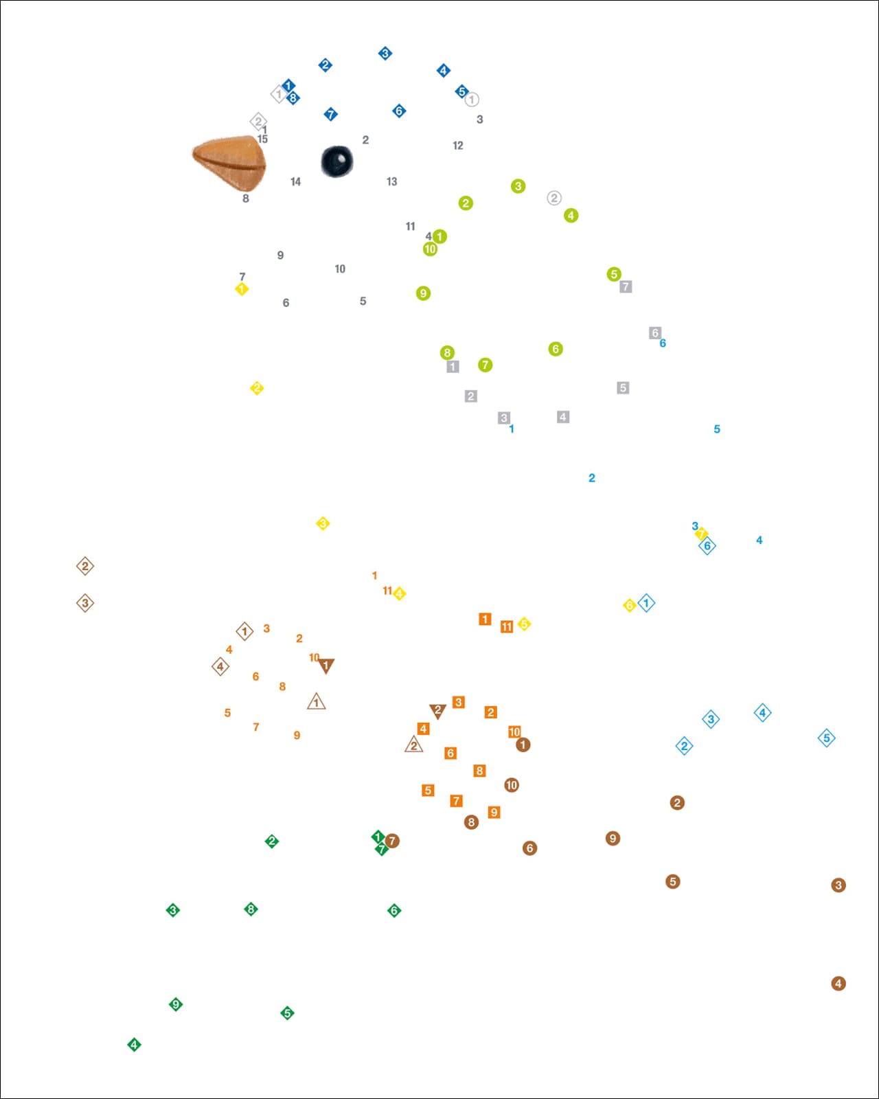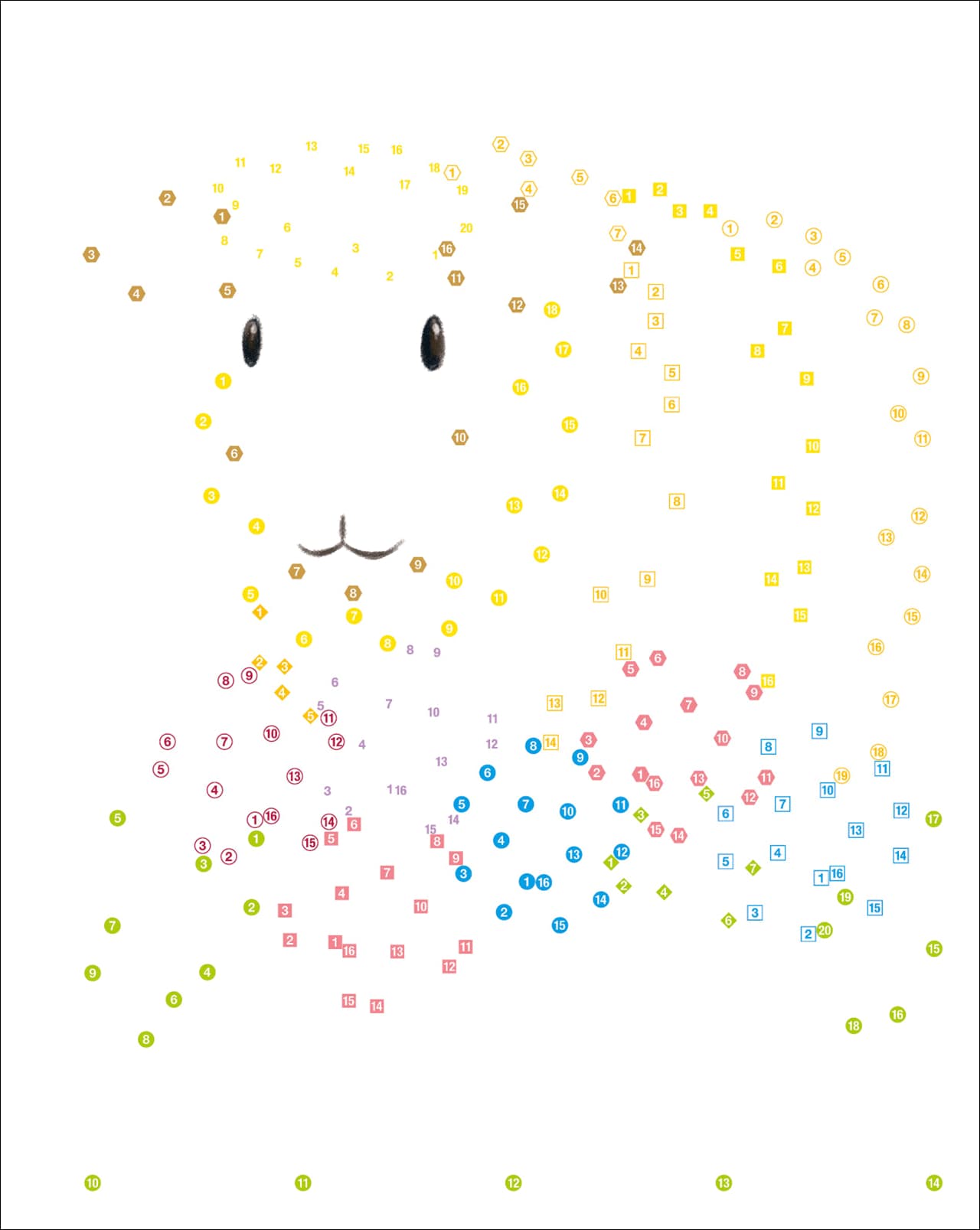 Mit Anleitung und Lösungen im Buch. Die Farbpalette der Motive entspricht handelsüblichen Stiftpackungen mit 24 Farben.