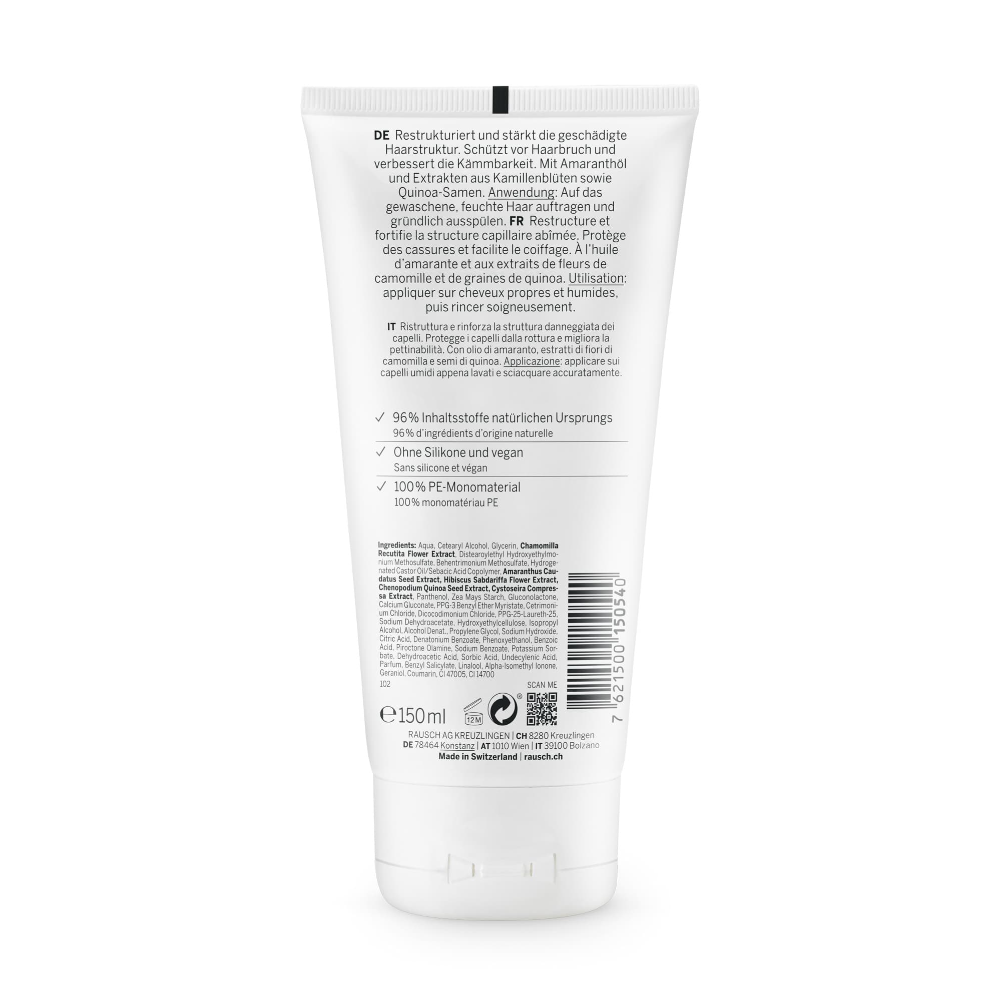 • Hergestellt in der Schweiz mit Amaranthöl sowie hauseigenen Extrakten aus Kamillenblüten und Bio Fairtrade Quinoa