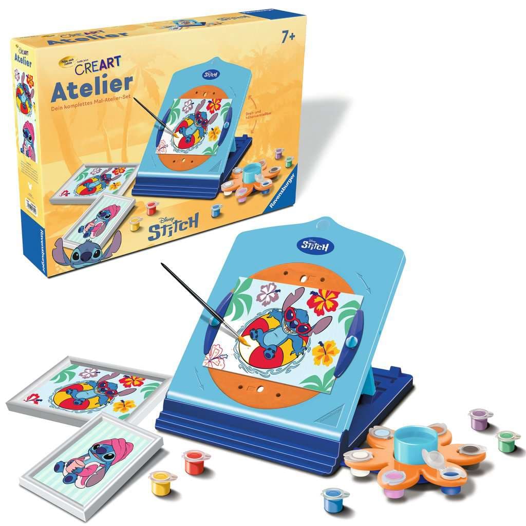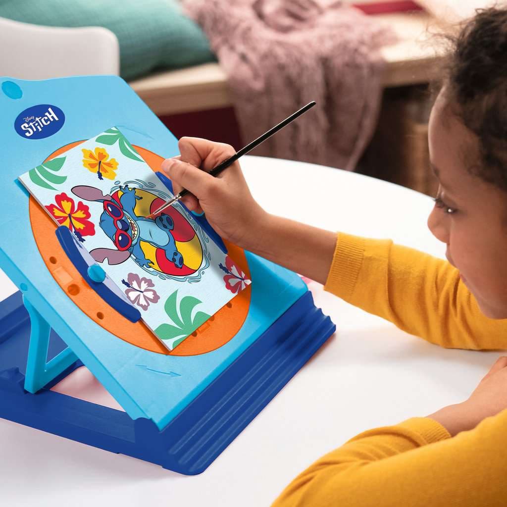 Mit dem Atelier mit Stitch macht Malen ab 7 Jahren noch mehr Spaß! Die dreh- und höhenverstellbare Staffelei wird für die ideale Malposition individuell angepasst und bietet eine Aufbewahrungsmöglichkeit für alle Materialien.