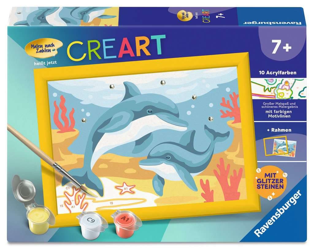 Ravensburger CreArt - Malen nach Zahlen Kinder - Verspielte Delfine