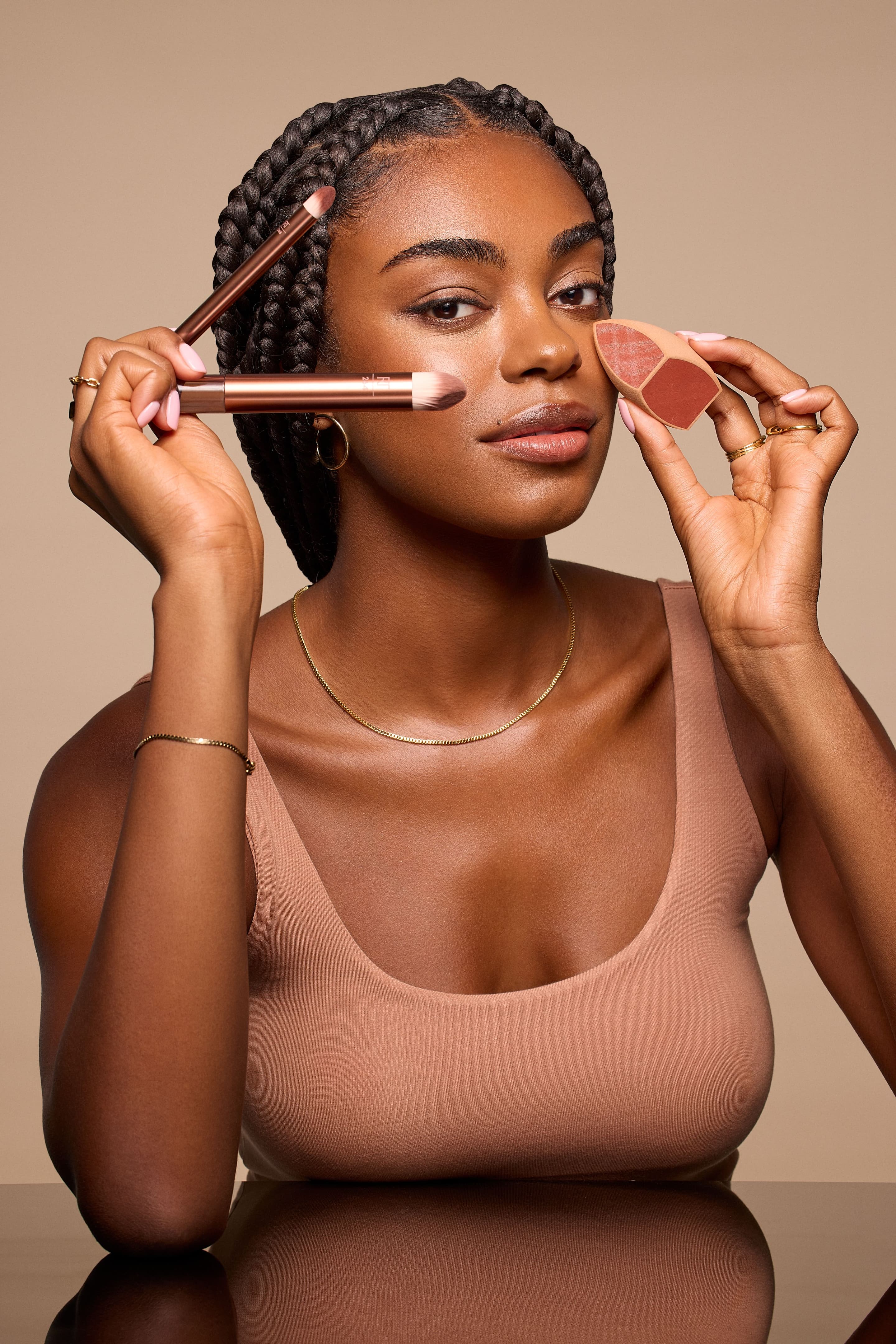 Die patentierte, mehrfach abgewinkelte Form des Makeup-Sponges erreicht mühelos alle Bereiche des Gesichts, sowohl große als auch punktuelle. Der Makeupsaver Sponge wird am besten trocken mit flüssigen und cremigen Produkten wie Foundation und Concealer verwendet. Beide Makeup-Pinsel verfügen über einzigartige abgeschrägte Köpfe für nahtloses Verblenden, während ihre dicht gepackten Fasern dafür sorgen, dass nur wenig Produkt absorbiert wird. Die Makeup-Tools in diesem Pinsel-Trio sind alle 100% vegan und tierversuchsfrei und die Pinsel bestehen aus UltraPlush, synthetischen Borsten