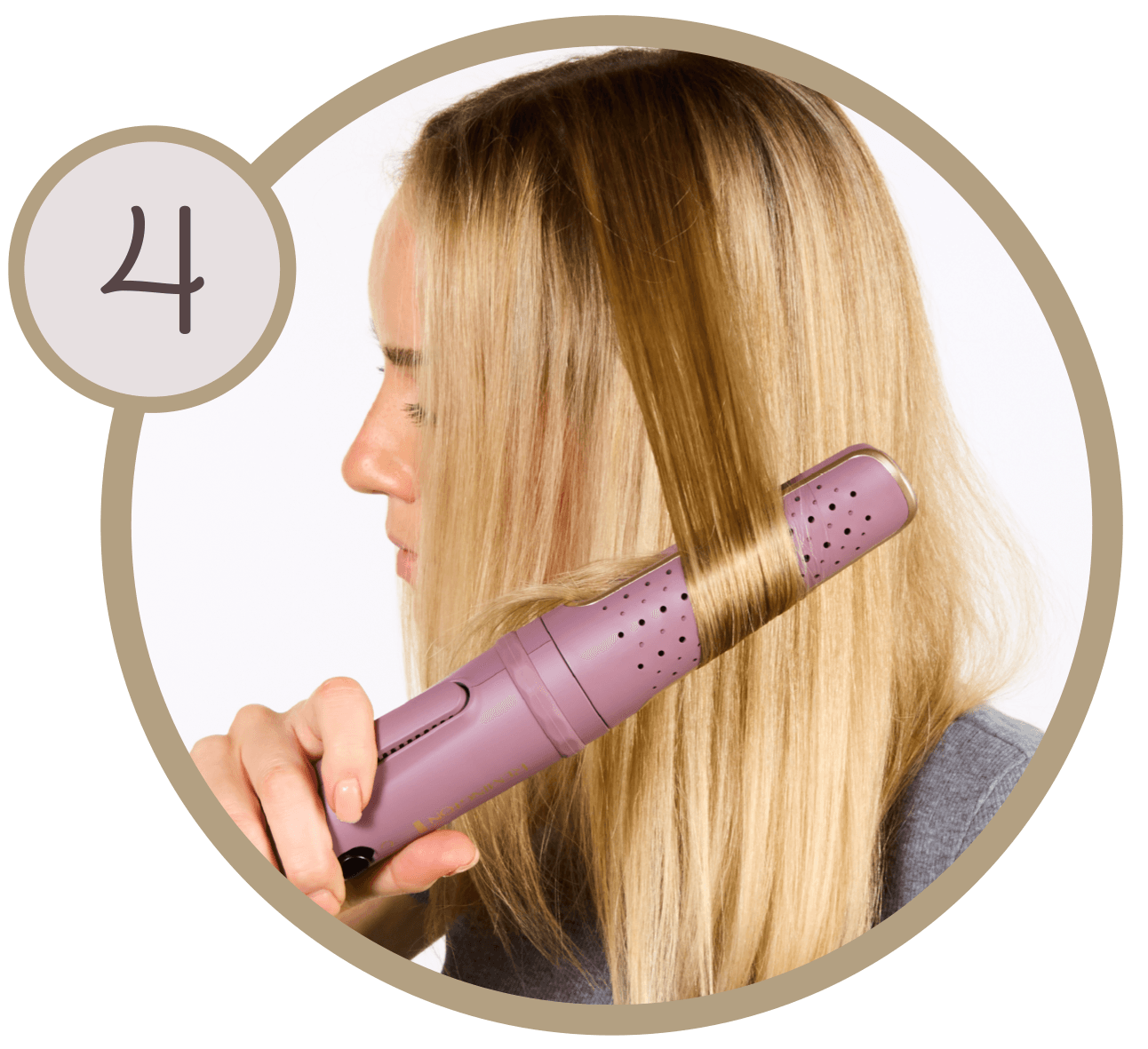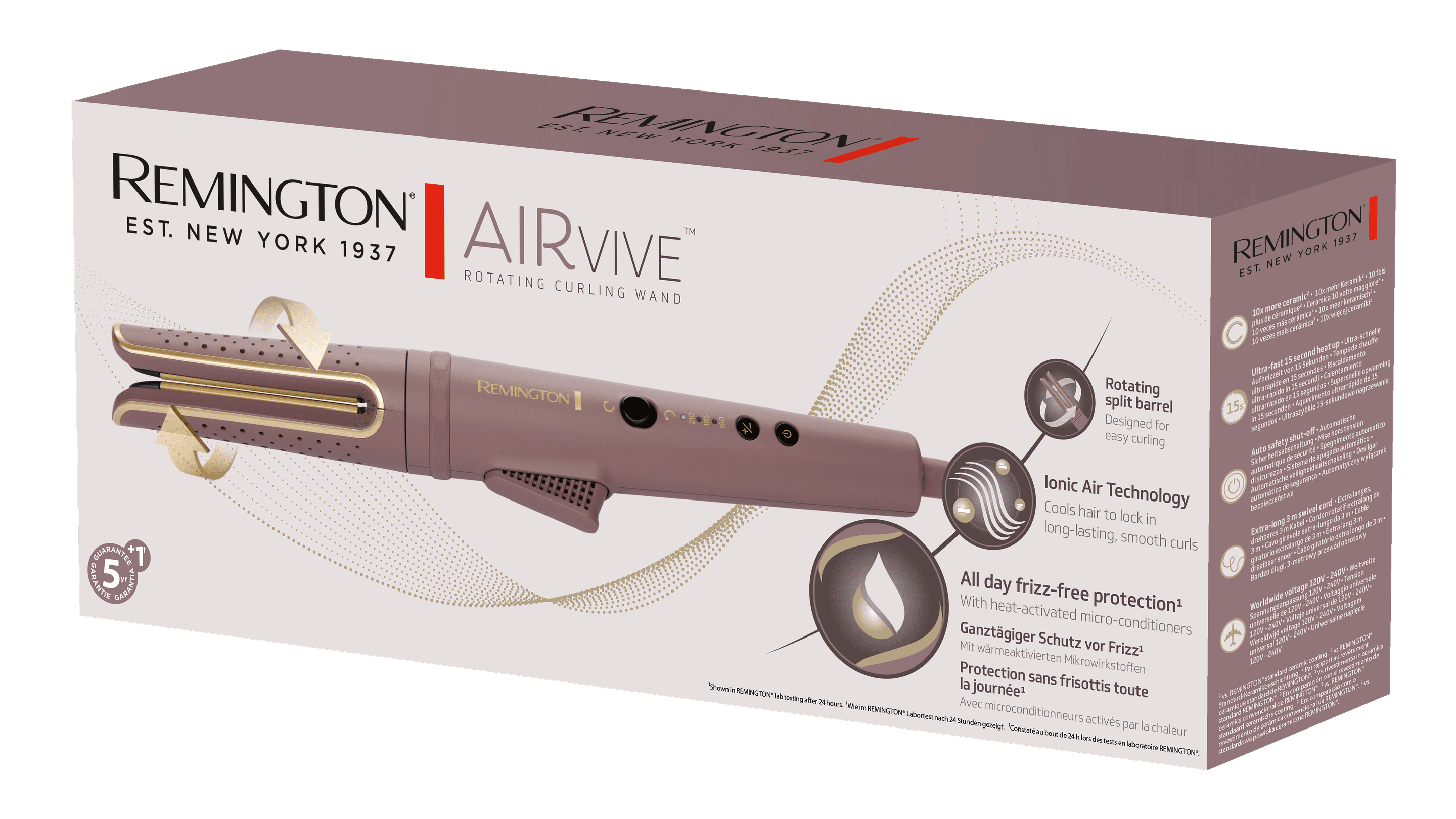 Definiere deine Locken mühelos mit dem REMINGTON® AIRvive rotierenden Lockenstab. Die sanfte, antistatische Ionic Air-Technologie kühlt das Haar sofort, um die Lockenform zu fixieren, während ultra-glatte Keramikstylingplatten, die mit wärmeaktivierten Mikrowirkstoffen angereichert sind, für glatte Locken und ganztägige Frizz-Freiheit sorgen. Der rotierende, geteilte Stab mit einem einfach zu bedienenden Drehknopf sorgt dafür, dass kein Handgelenk verdreht werden muss. Einfach die gewünschte Haarpartie einlegen, den Hebel drücken und langsam hindurchgleiten, wobei jede Locke mit dem Lockenrichtungs-Wähler variiert wird, um ein natürliches Ergebnis zu erzielen. Du behältst die vollständige Kontrolle mit dem aktiv gekühlten Stab und 3 digitalen Temperatureinstellungen von 160°C bis 210°C, sodass du die richtige Temperatur für dein Haar und das gewünschte Ergebnis wählen kannst. Style bei niedrigen Temperaturen für sanfte Locken oder erhöhe die Temperatur für engere, definiertere Locken. Die ultra-glatte Keramikbeschichtung der Stylingplatten enthält 10x mehr Keramik, um mühelos durch dein Haar zu gleiten, ohne hängenzubleiben, und das fortschrittliche Heizsystem verteilt die Wärme präzise und gleichmäßig, sodass du Ergebnisse mit nur einem Durchgang erzielst und weniger Hitze ausgesetzt bist.