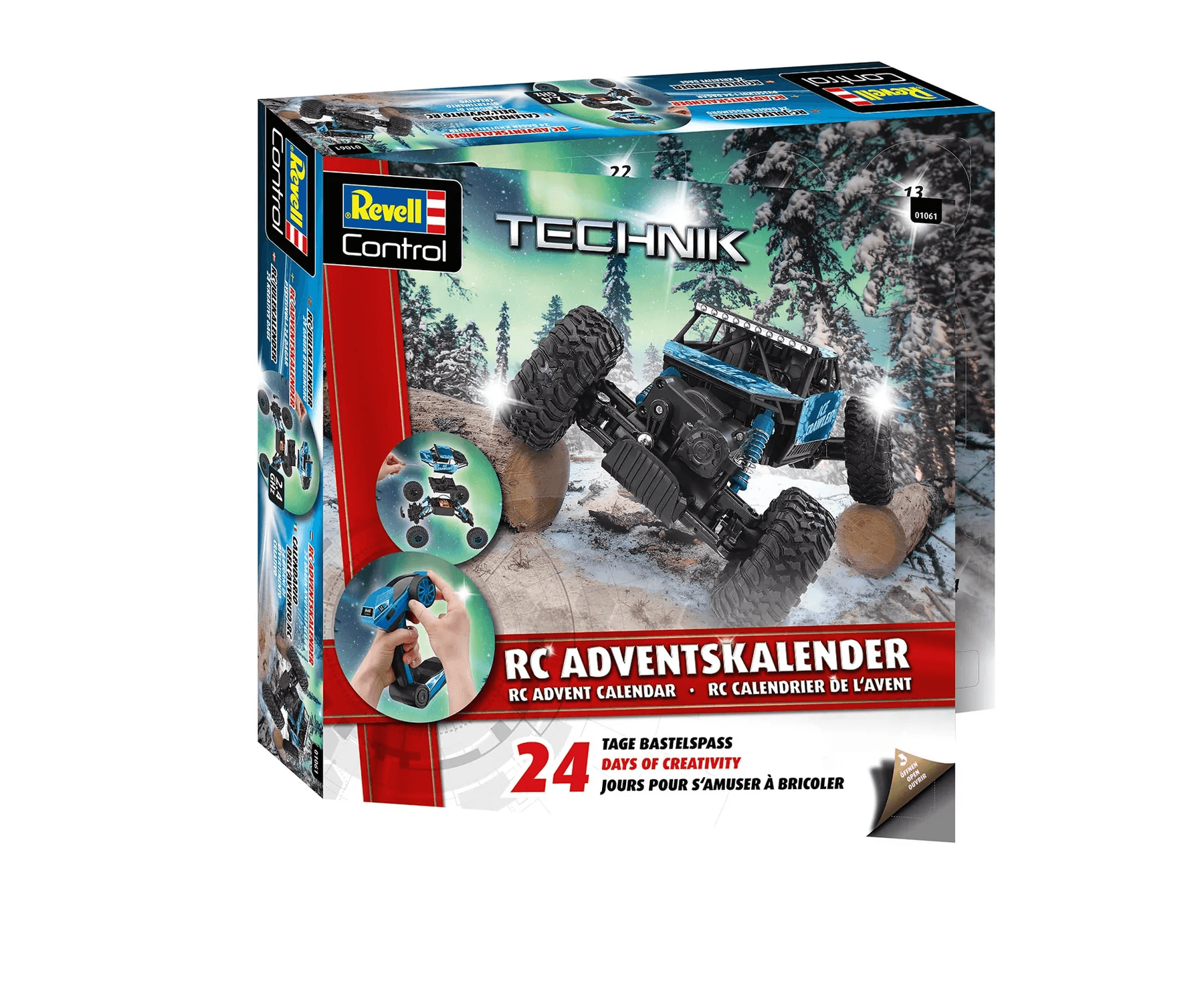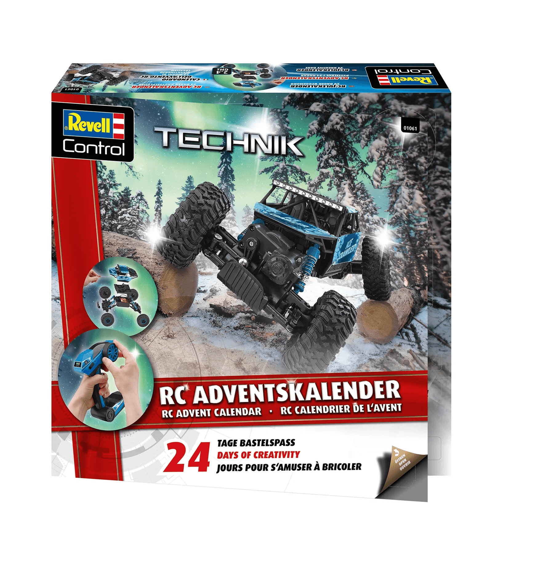 Mit dem Revell RC Adventskalender „RC Crawler“ wird die Vorweihnachtszeit zum täglichen Technik-Highlight! Hinter jedem der 24 Türchen verbirgt sich ein Bauteil, das Schritt für Schritt zu einem voll funktionsfähigen, ferngesteuerten Geländewagen führt. Der fertige RC Crawler überzeugt durch seine robuste Bauweise, starke Geländegängigkeit und ein cooles Offroad-Design.