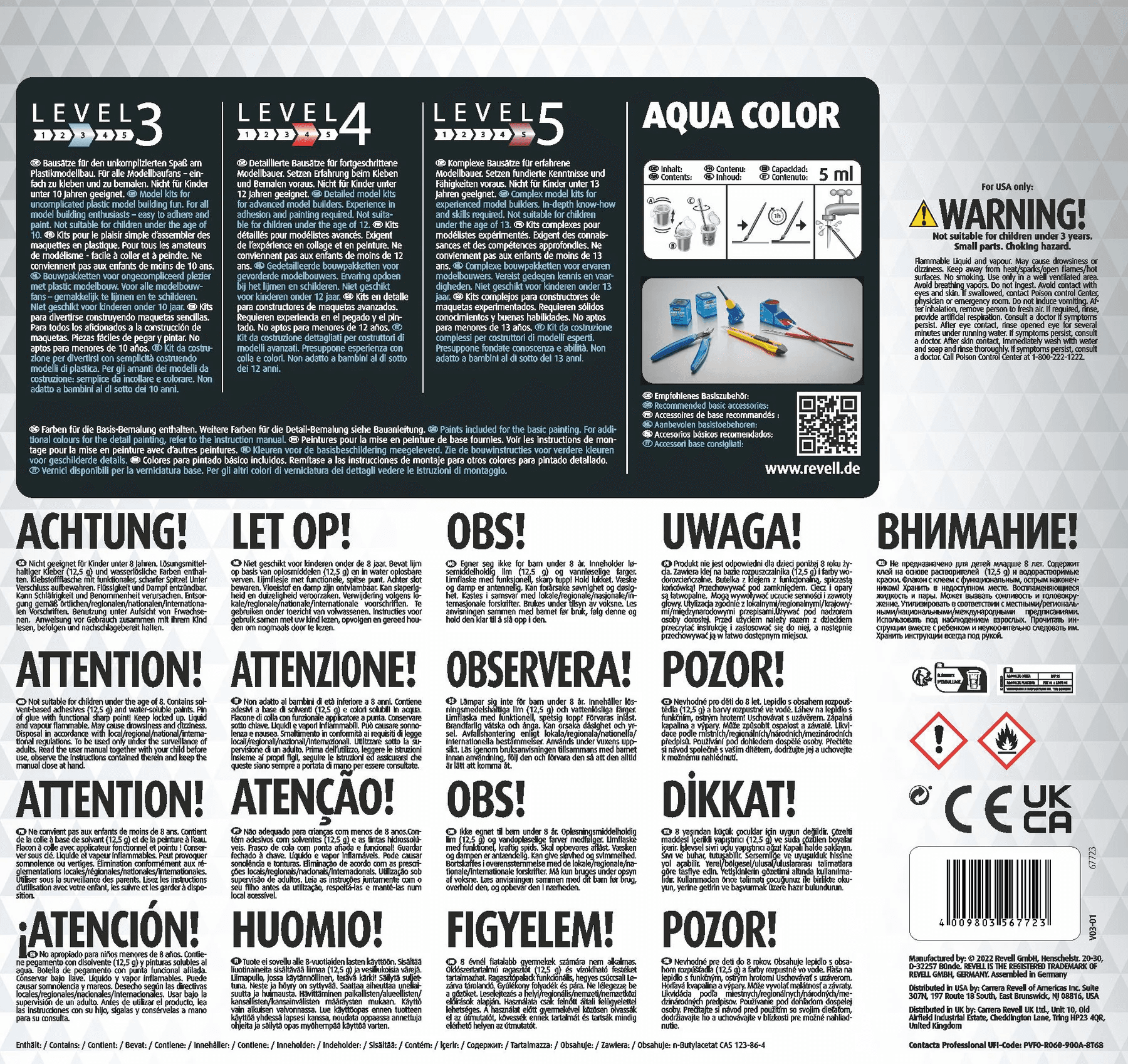 Benutzung unter Aufsicht von Erwachsenen. Anweisung vor Gebrauch zusammen mit ihrem Kind lesen, befolgen und nachschlagebereit halten. Achtung. Nicht geeignet für Kinder unter 8 Jahren. Lösungsmittelhaltiger Kleber (12,5 g) und wasserlösliche Farben enthalten. Klebstoffflasche mit funktionaler, scharfer Spitze!