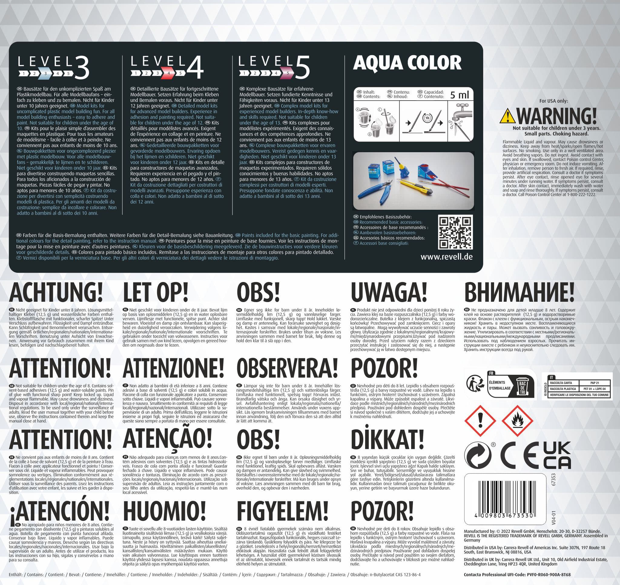 Der EB110 Modellbausatz richtet sich an erfahrene Modellbauer (Level 5). Er erfordert fundierte Kenntnisse und Fähigkeiten im Modellbau, da präzises Kleben, Bemalen und detailliertes Zusammenbauen notwendig sind.