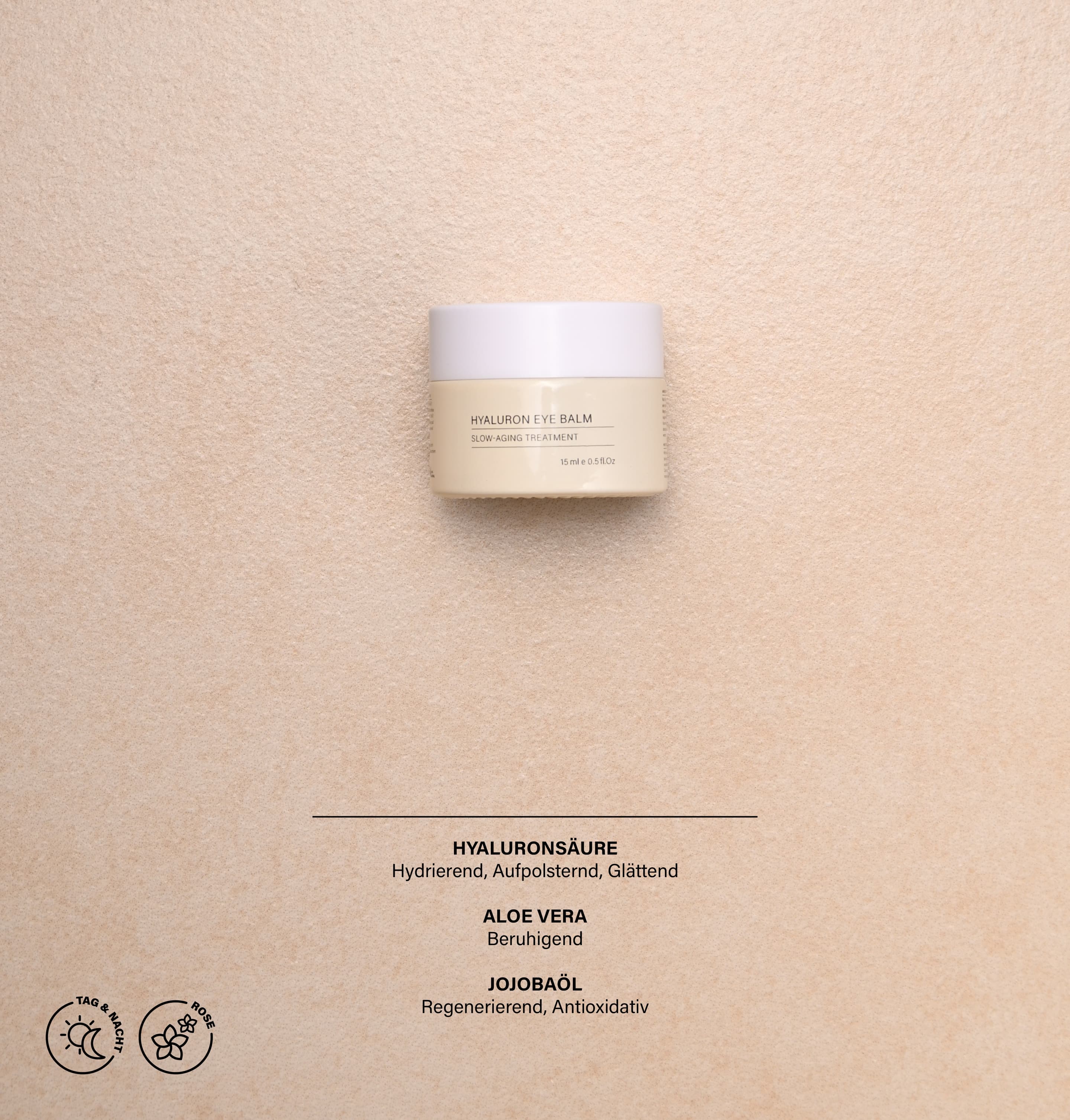 | Anwendungshinweis | Verteile nach der Reinigung, eine erbsengroße Menge rund um die Augen und klopfe die Pflege sanft ein. Kann morgens und abends angewendet werden. |