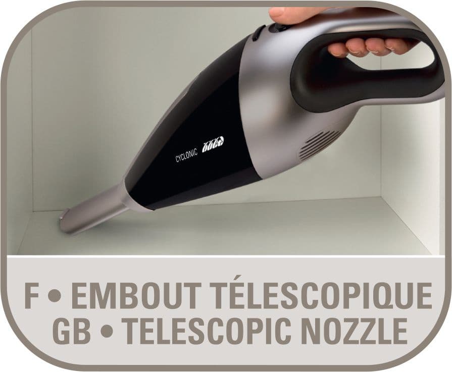 Der Extenso Dry ist ein kabelloser Handstaubsauger für ausgezeichnete Ergebnisse bei den kleineren Aufgaben des Alltags. Dank seiner kompakten Größe und dem wirkungsvollen Cyclonic-System meistert er kleine Reinigungsaufgaben auch an besonders schwer zugänglichen Stellen.