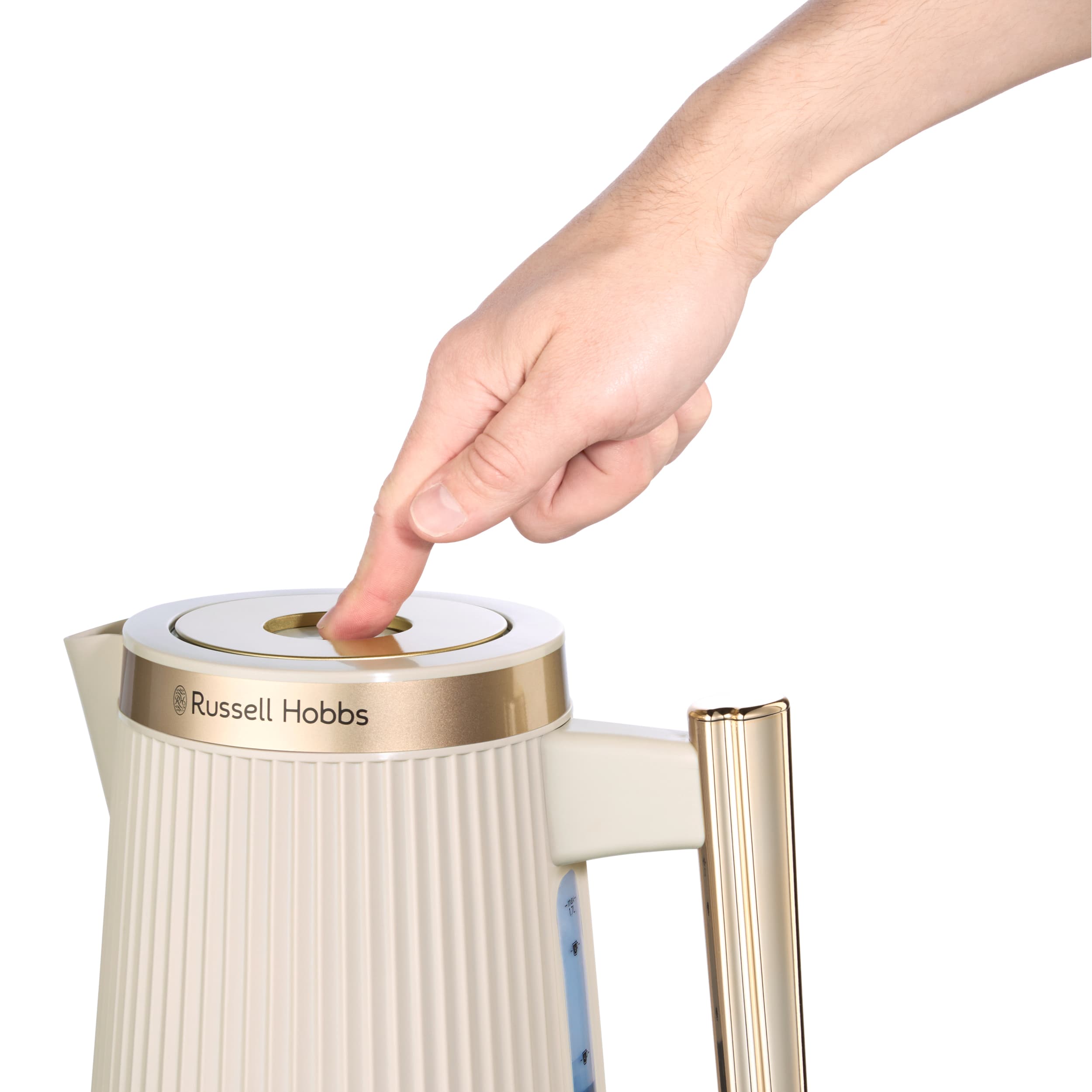 Edelstahlakzenten in Gold ist der Russell Hobbs Brontë Wasserkocher ein elegantes